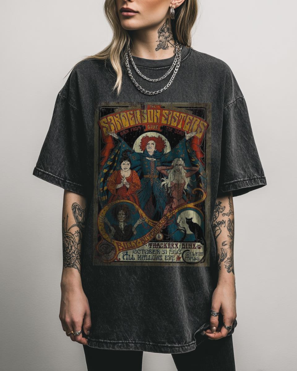 Ready for Spooky Season with a Sanderson Sisters T-Shirt? Conjure up some magic this Halloween with this enchanting Sanderson Sisters T-Shirt, featuring a Hocus Pocus Halloween graphic. This fan-created design pays homage to the iconic witch trio, presented on a stylish black acid wash tee perfect for fall festivities and movie marathon nights. Why This…