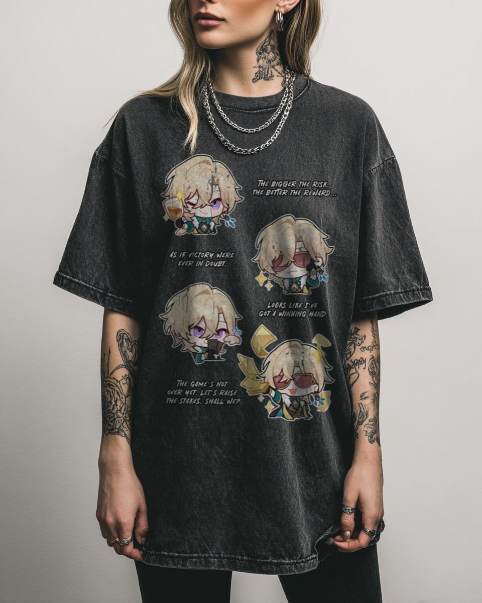 Discover the Stelle Honkai Star Rail V.1 Anime Tee! Join the Astral Express crew with this captivating **Stelle Honkai Star Rail V.1 Anime Tee**. Featuring a dynamic graphic of Stelle on a unique black acidwash background, this fan-created design is a perfect way for any Trailblazer to showcase their love for the Hoyoverse’s epic space…