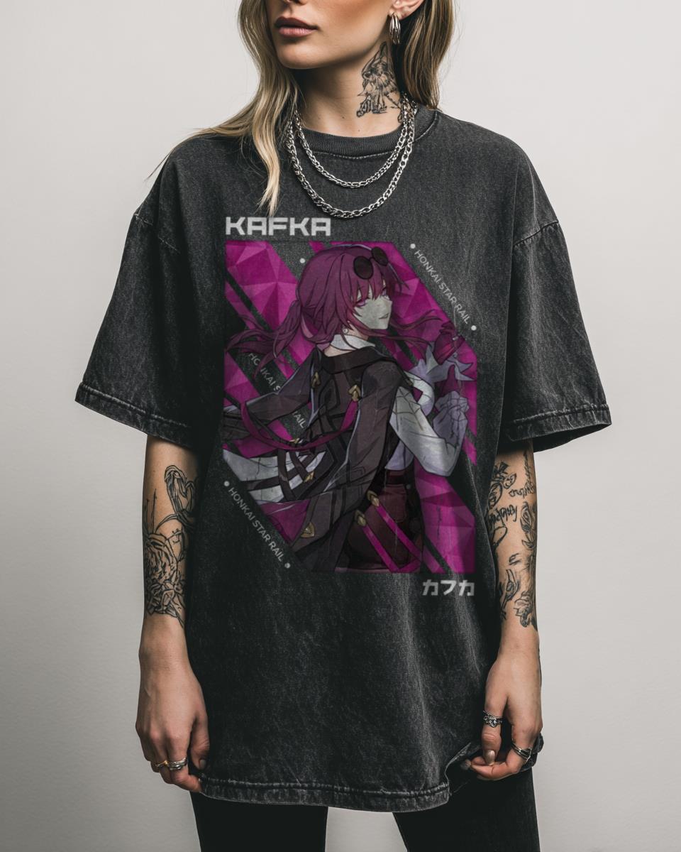 Are you entranced by the captivating allure of Kafka from Honkai Star Rail? This ‘Kafka – Honkai Star Rail’ design beautifully captures the anime aesthetic of the enigmatic Kafka. Perfect for fans of the Hoyoverse game, this tee celebrates the stylish Nihility character and her electrifying presence, making it a must-have for any Star Rail…