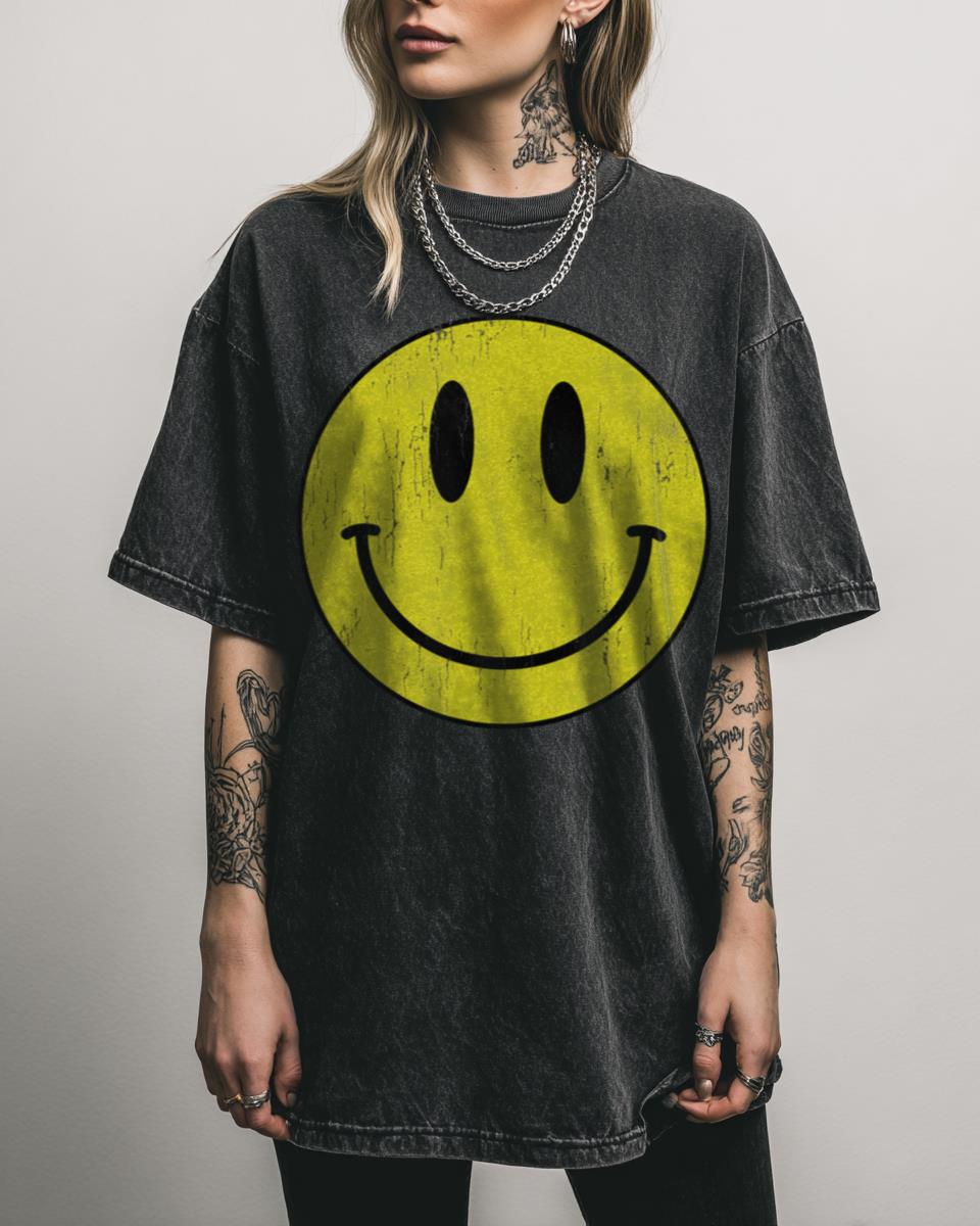 Ready to bring back the good vibes of the 80s rave scene? Channel the energetic spirit of acid house music with this classic retro smiley face T-shirt! Featuring the iconic emoticon that defined an era of electronic dance music, this tee is perfect for DJs, ravers, and anyone who loves the euphoric beats of 80s…