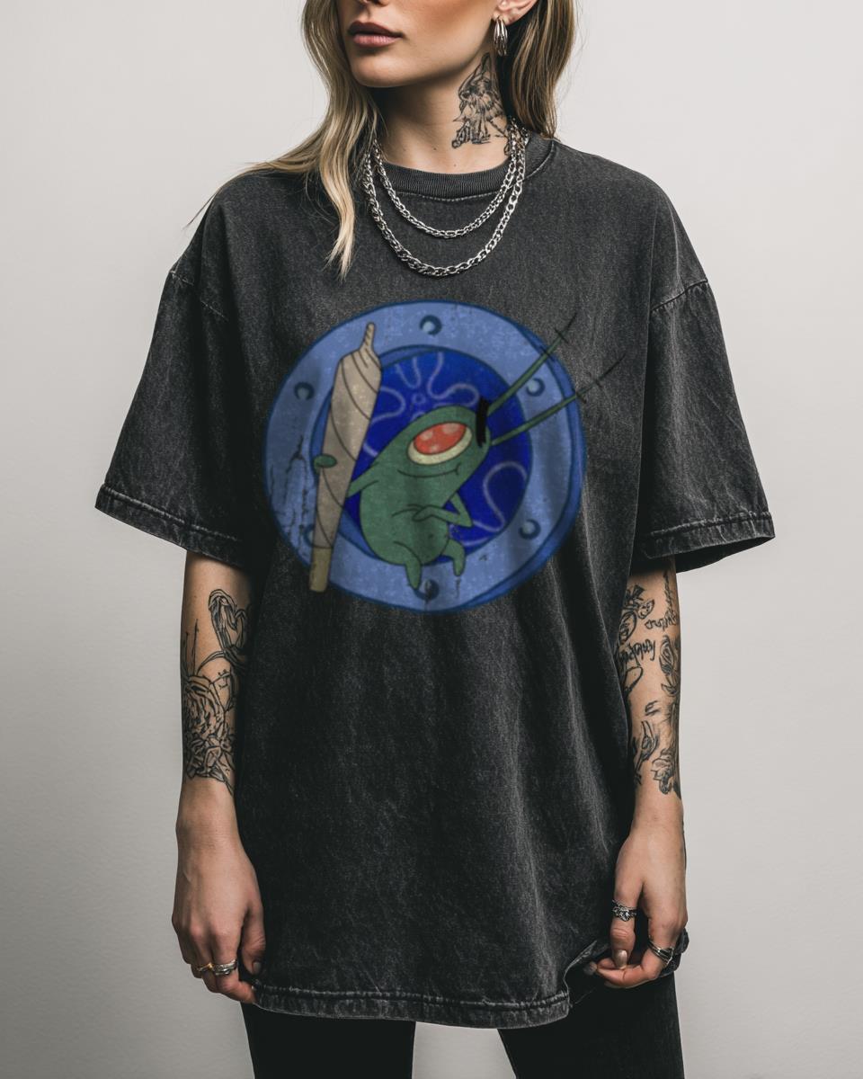 Get a Laugh with This Stoner Plankton Bedtime Joint Weed Art Tee! Kick back and relax with this humorous **Stoner Plankton Bedtime Joint Weed Art Tee**. Featuring a playful parody of the iconic Spongebob character, Plankton, in a laid-back pose on a black acidwash finish, this fan-created shirt is perfect for those who appreciate adult…