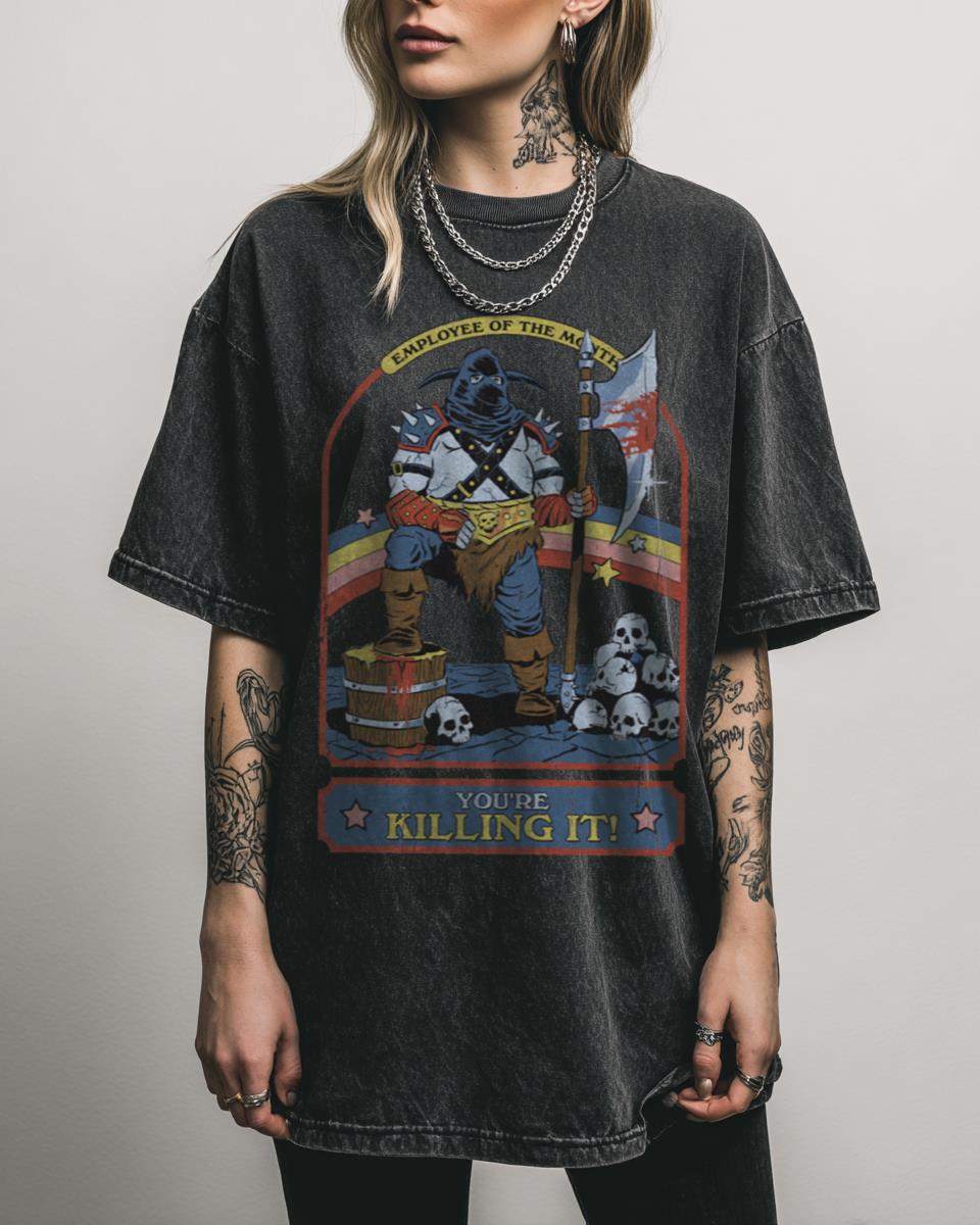 Do you have a darkly humorous take on life’s challenges? Embrace the gallows humor with this ‘You’re Killing It’ design, featuring a medieval executioner. This retro-inspired graphic blends fantasy elements with a dash of dark comedy, perfect for those who appreciate sarcastic wit and vintage horror aesthetics. It’s a unique and edgy way to express…