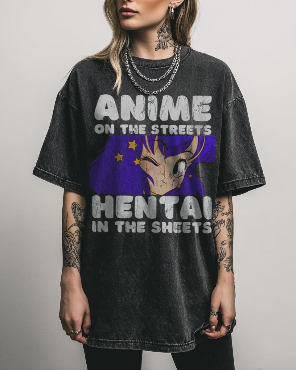 Looking for a humorous way to express your dual anime personality? This ‘Anime on the Streets, Hentai in the Sheets’ graphic T-shirt is the perfect blend of playful and provocative for the discerning anime fan. It’s a cheeky inside joke for weebs and otaku who appreciate the full spectrum of Japanese animation, from wholesome stories…
