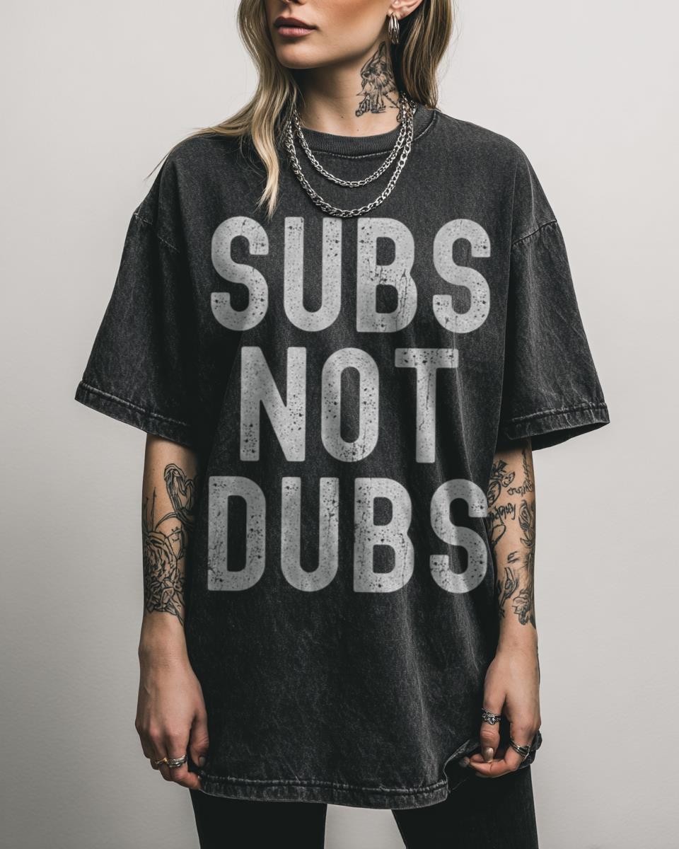 Are you a purist when it comes to watching anime? This tee speaks your truth! Proudly declare your preference with this ‘Subs Not Dubs’ graphic T-shirt, a universally understood mantra among dedicated anime fans and weebs. This design is a humorous yet firm statement for those who believe the original Japanese voice acting and subtitles…