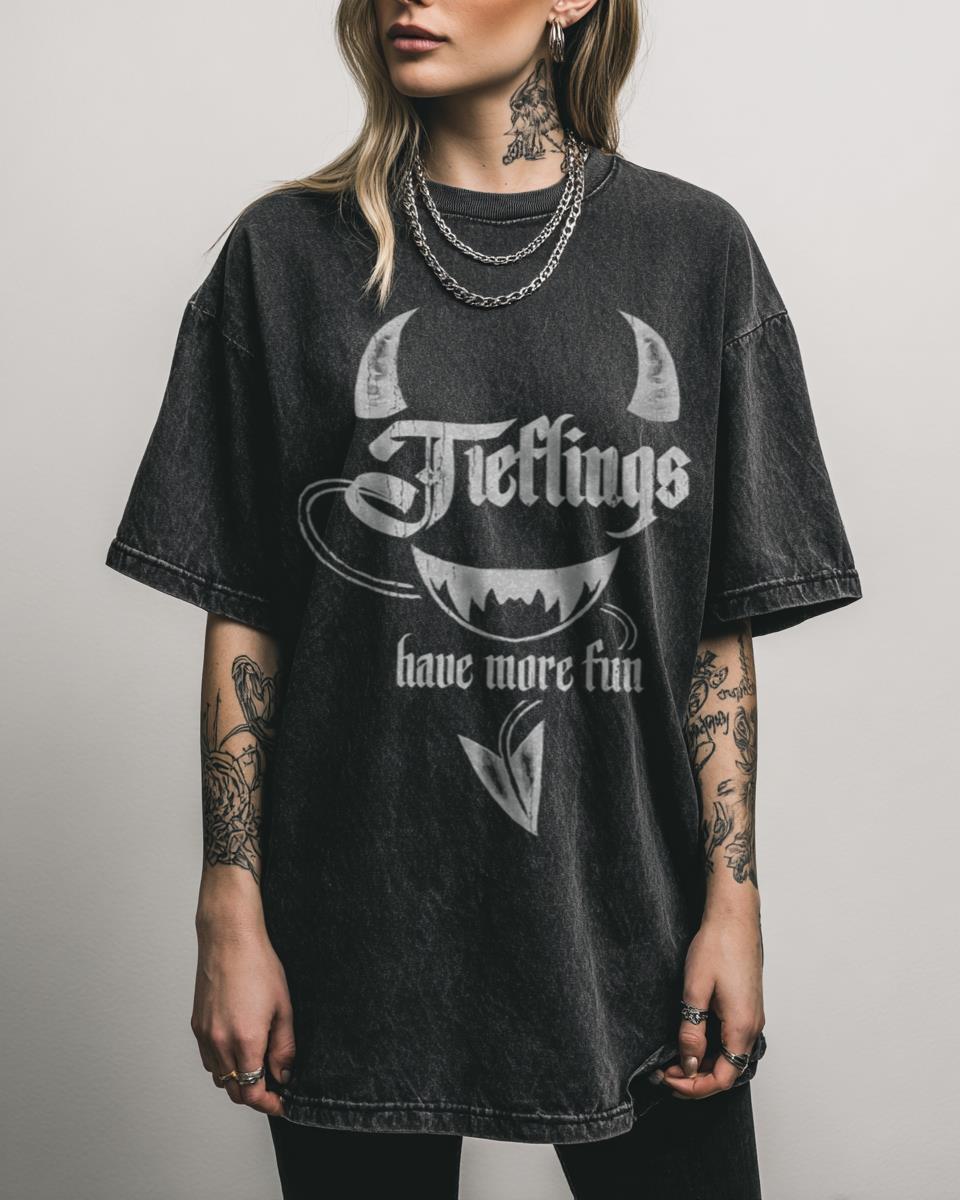 Do you believe Tieflings truly have more fun in your D&D campaigns? Declare your Tiefling pride with this playful and humorous ‘Tieflings Have More Fun’ T-shirt! This design is perfect for Dungeons & Dragons players who love the horned, tailed, and often mischievous Tiefling race. It’s an ideal way to show off your tabletop RPG…
