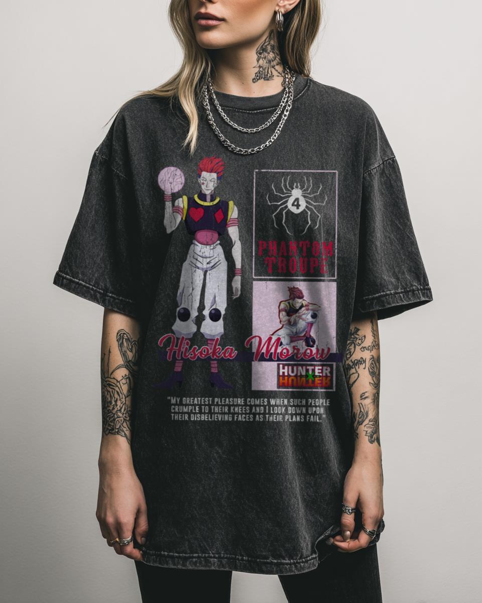 Are you a true fan of the Hunter x Hunter universe? Unleash your inner Phantom Troupe member with this “Spider No. 4” T-shirt, a subtle yet powerful nod to the enigmatic Hisoka Morow and his iconic spider tattoo. This design is perfect for those who appreciate the complex characters and thrilling adventures of Hunter x…