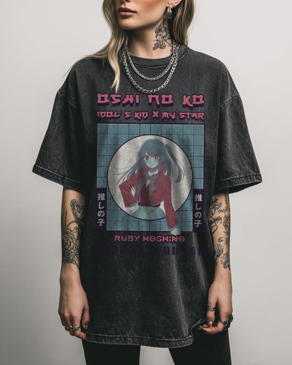 Looking for the perfect way to celebrate your favorite Oshi no Ko idol, Ruby Hoshino? Show your admiration for Ruby Hoshino with this vibrant graphic tee inspired by the hit anime and manga series, Oshi no Ko. This design captures the essence of the aspiring idol, making it a fantastic addition to any fan’s collection….