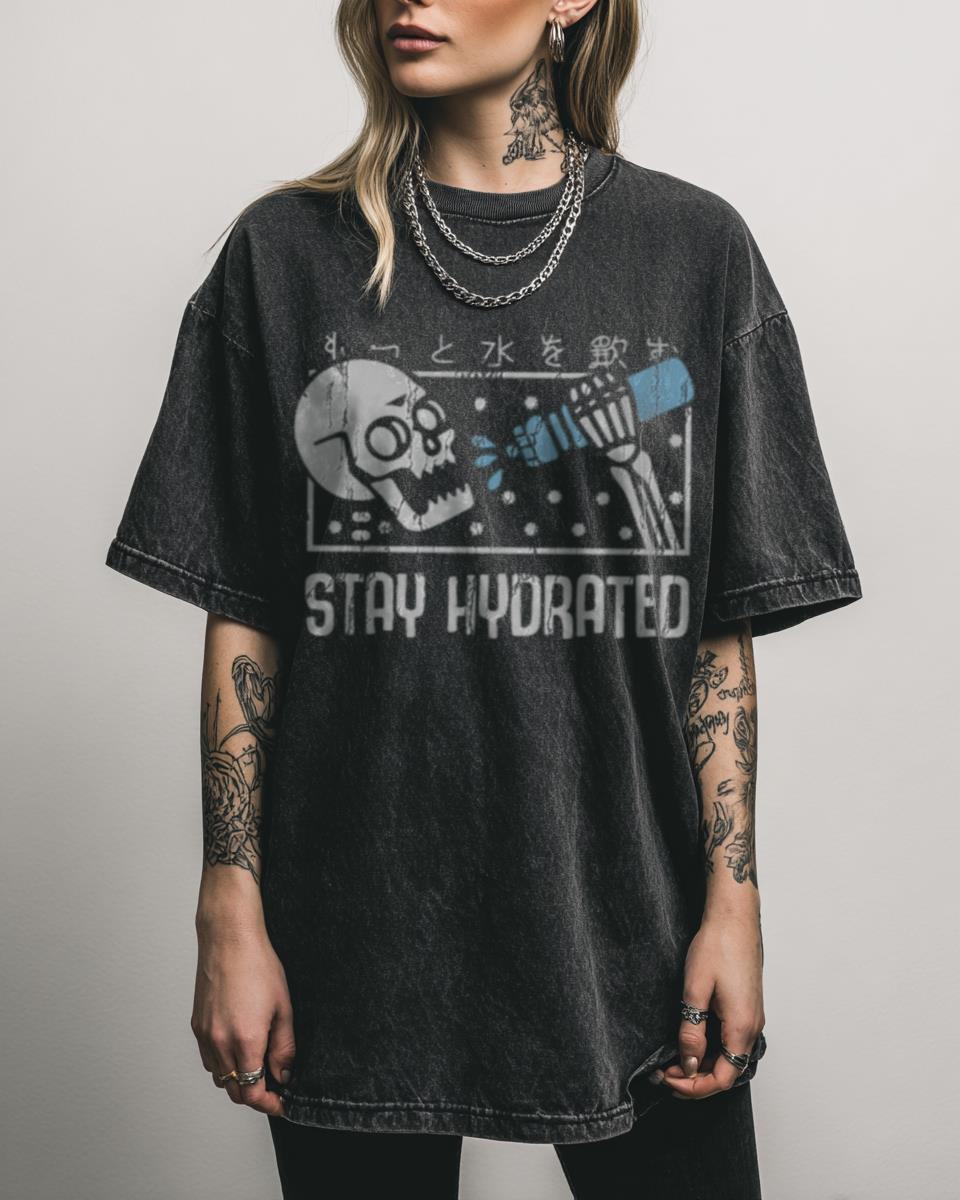 Stay Hydrated in Style with This Skeleton Aesthetic Tee? Promote a healthy lifestyle with an edgy twist with this **Stay Hydrated Skeleton Aesthetic Japanese Anime Acidwash Tee**. Featuring a cool skeleton design and Japanese typography, this graphic shirt is a unique blend of aesthetic appeal and a vital health reminder. Why This “Stay Hydrated” Tee…