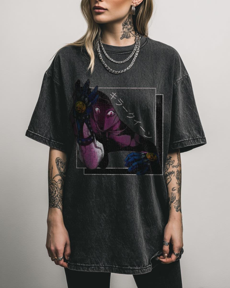 What Does the “Bites Za Dusto” T-Shirt Mean for JoJo Fans? Turn back time with this iconic “Bites Za Dusto” T-shirt, a powerful reference to JoJo’s Bizarre Adventure and Killer Queen’s formidable ability. Featuring a striking graphic on a black acid wash tee, it’s a must-have for fans of the Diamond is Unbreakable arc and…