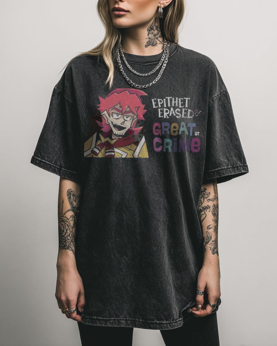Join the Banzai Blasters with this adorable Epithet Erased tribute? This cute T-shirt features the “Great Crime Epithet Erased” design, celebrating the beloved animated web series. With a kawaii, chibi-style graphic, it’s perfect for fans of Giovanni Potage and the Banzai Blasters, bringing a touch of humor and charm from the Epithet Erased universe to…