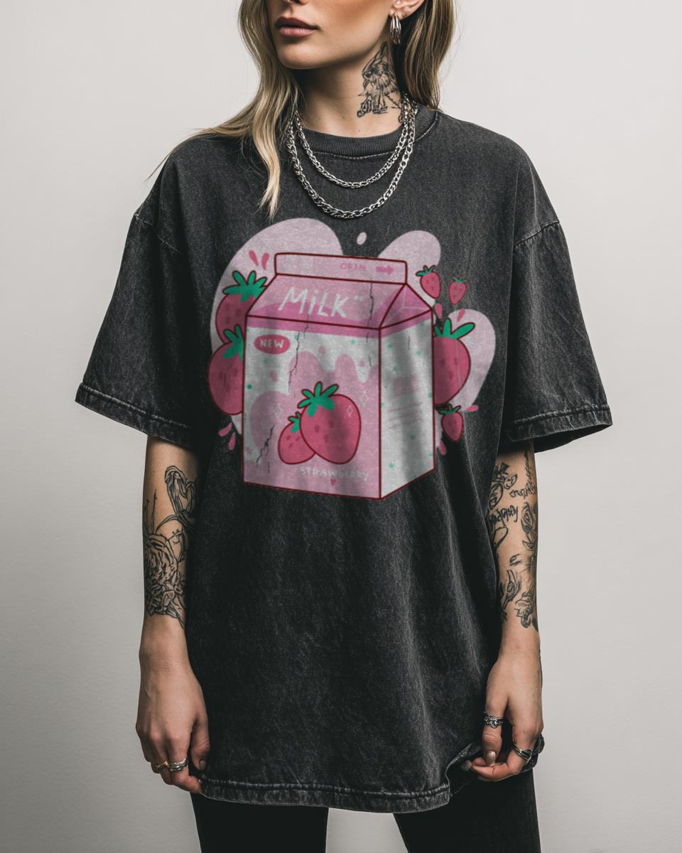 Craving something sweet and adorably charming? Indulge in the sweet simplicity of this ‘Strawberry Milk’ design, rendered in a delightful kawaii style. This graphic features a cute pink milk carton, bringing a touch of playful charm to your everyday wear. Perfect for fans of cute aesthetics, anime-inspired designs, and anyone who loves a refreshing, sweet…