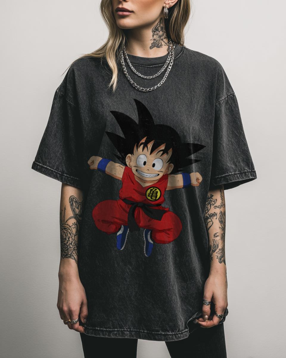 Why Choose This Kid Goku Fast Move Acidwash T-Shirt? Relive the early adventures of your favorite Saiyan with this Kid Goku Fast Move T-shirt, showcasing a dynamic graphic of young Goku in action. This fan-created design, inspired by the classic Dragon Ball Z series, comes on a stylish black acidwash tee, perfect for showing off…