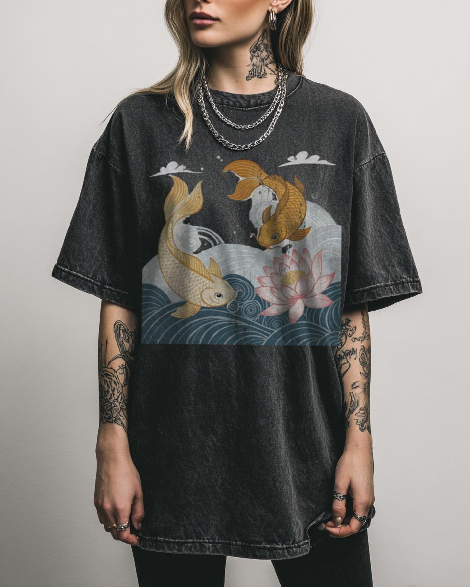 Seeking a design that embodies luck, energy, and spiritual harmony? Dive into the serene beauty of our ‘Twin Koi Fish’ graphic tee. This design features an elegant depiction of two koi, symbolizing ancient charm, protection, and positive energy in Japanese culture, perfect for those who appreciate mystical and spiritual art. Why You’ll Love This: Mystical…