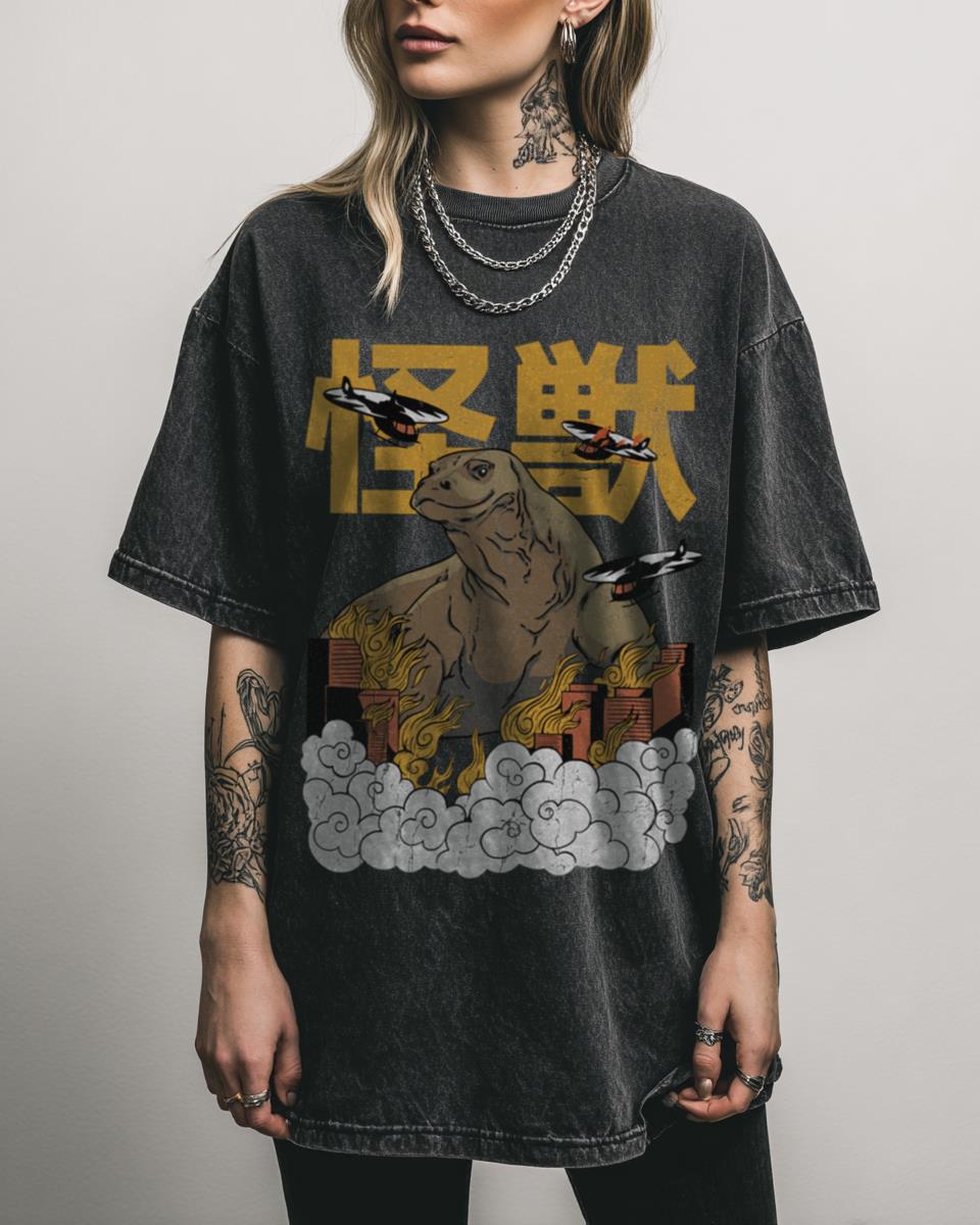 Why This Funny Komodo Dragon Japanese Style Tee is a Unique Find? Unleash your love for exotic reptiles with this funny giant Komodo Dragon Japanese style graphic tee! Featuring a humorous take on the majestic lizard with a distinct Japanese aesthetic, this 100% cotton black acidwash shirt is perfect for animal lovers and unique art…