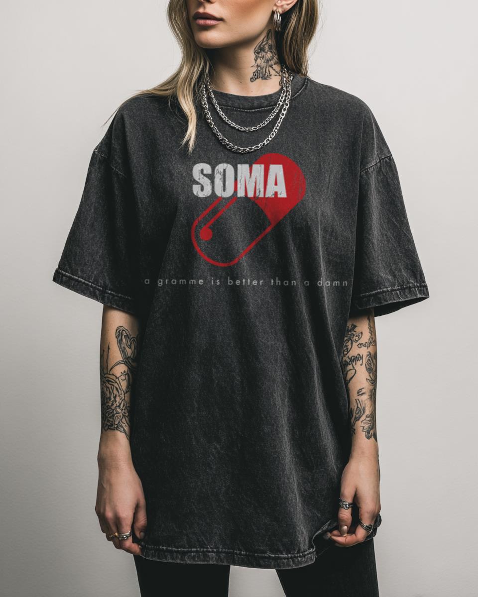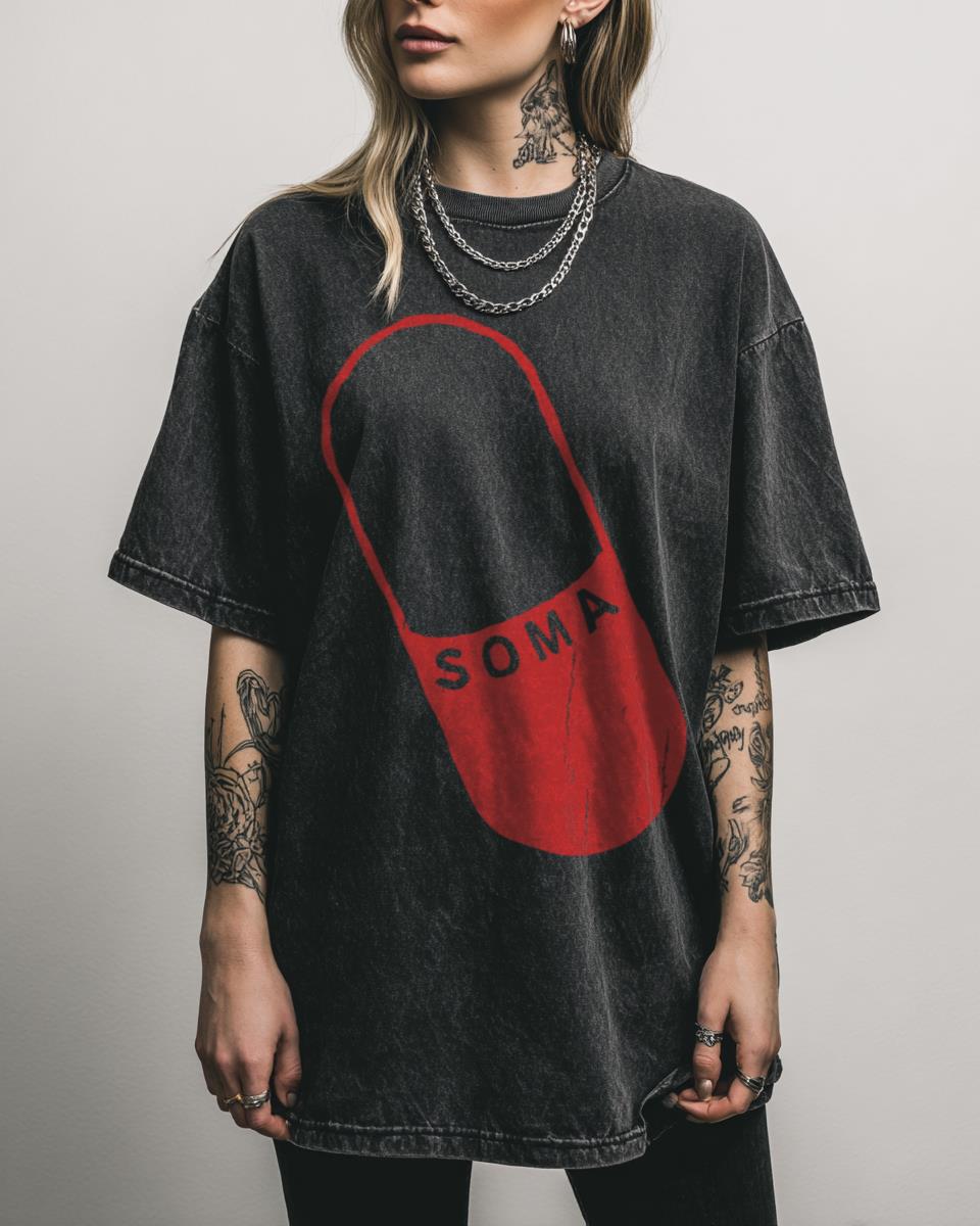 Are you a fan of classic dystopian literature? Dive into the world of Aldous Huxley with our ‘Soma Brave New World’ T-shirt. This design pays homage to the iconic novel, featuring the symbolic ‘Soma’ pill, representing the utopian society’s means of control. It’s a thought-provoking piece for any literature enthusiast and a bold statement about…
