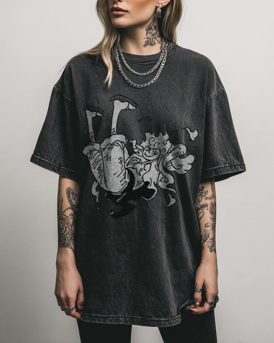 Unleash the Power with This Luffy Gear 5 One Piece T-Shirt! Witness the awe-inspiring transformation with this Luffy Gear 5 One Piece T-shirt, celebrating Monkey D. Luffy’s ultimate power-up. This fan-created graphic tee, featuring a striking black acidwash, is the perfect way for any dedicated anime fan to showcase their love for the Nika God….