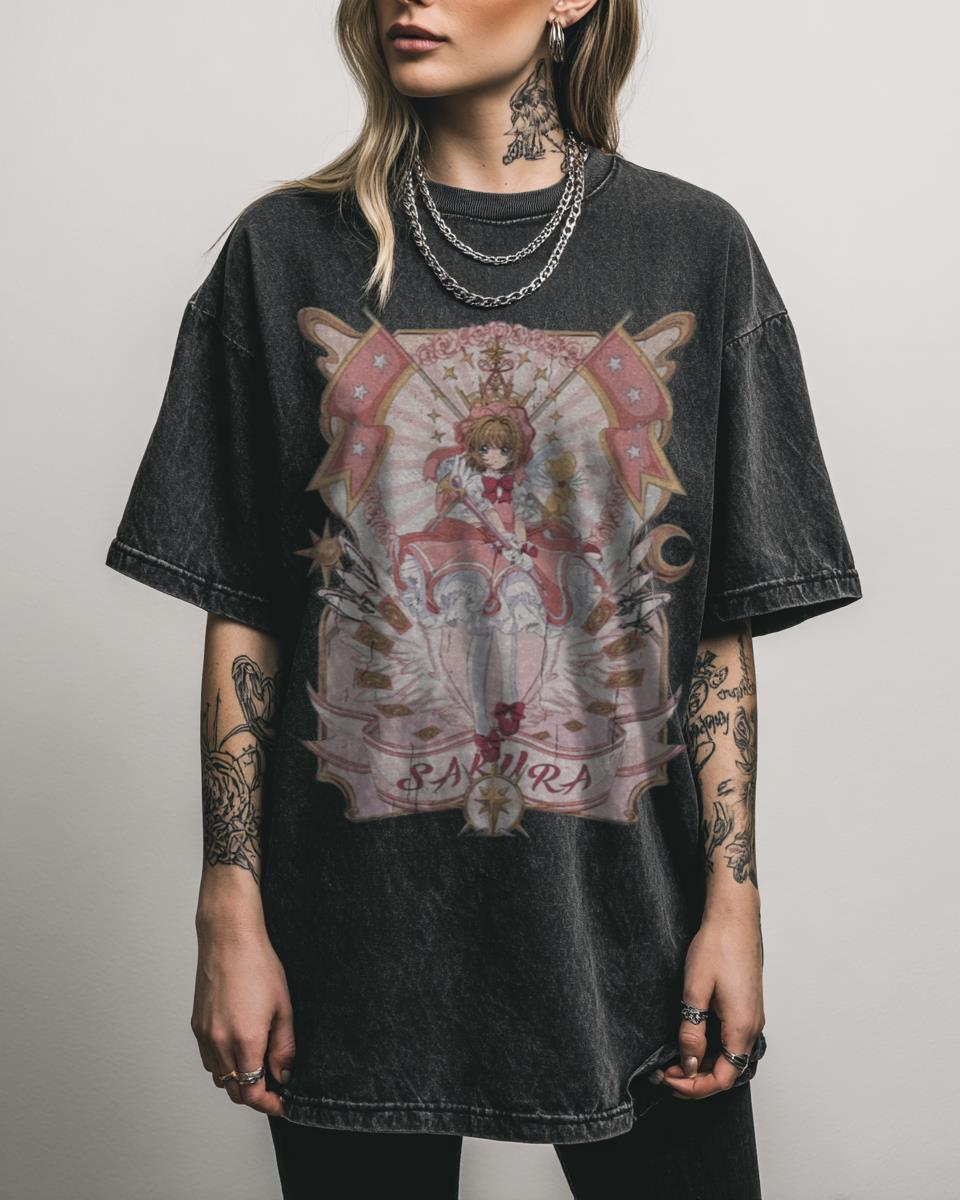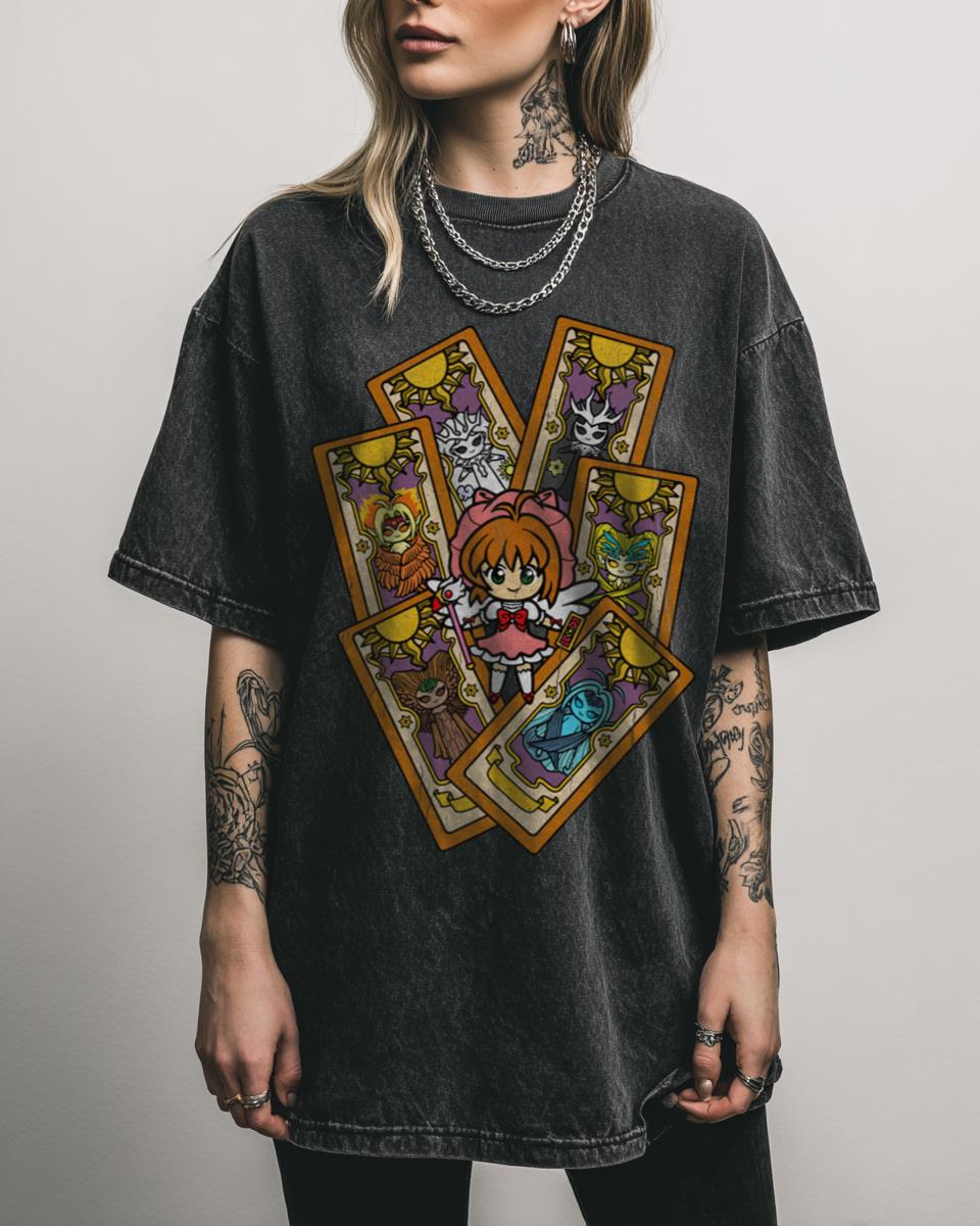 Unleash your inner magical girl with a mystical Cardcaptor Sakura design? Embrace the enchantment of ‘Cardcaptor Sakura Tarot,’ a beautiful design that merges the iconic Sakura Kinomoto with mystical tarot imagery. With elements of Clow Cards, Dream Staff, and a touch of Sailor Moon aesthetic, this tee is perfect for fans of magical girl anime…