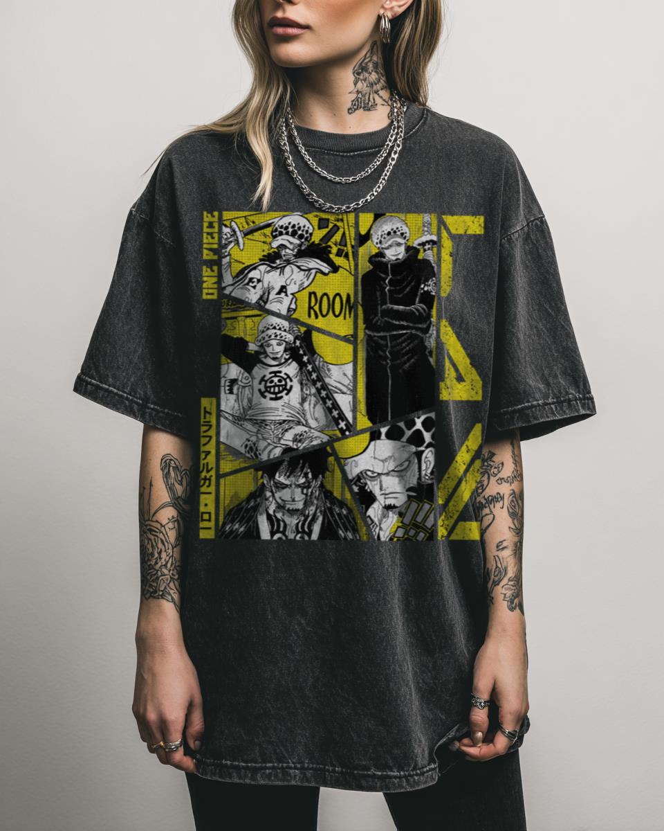 Show your admiration for the Surgeon of Death with this Trafalgar Law manga panel tee! This T-shirt features a captivating manga panel graphic of Trafalgar Law, one of the most popular and enigmatic characters from One Piece. It captures his cool demeanor and strategic brilliance, directly from the pages of the beloved Japanese manga, making…