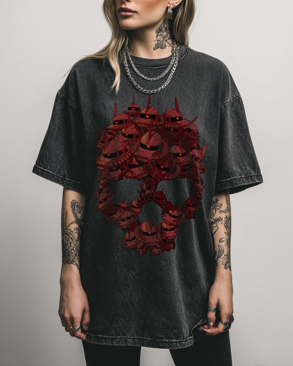 Do you reflect on mortality, even in the realm of giant robots? Contemplate the transient nature of existence with this ‘Mech-mento Mori (Red Edition)’ design, blending the classic memento mori theme with iconic mecha aesthetics. Featuring a Zaku-inspired skull, this graphic is a unique tribute for Gundam fans and anime enthusiasts who appreciate thoughtful, artistic…