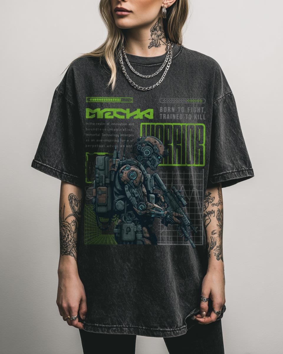 What Defines This Cyberpunk Mecha Warrior T-Shirt? Step into a dystopian future with this bold Cyberpunk Mecha Warrior T-shirt. Featuring a striking graphic of a cybernetic soldier, this black acidwash tee perfectly captures the gritty aesthetic of 80s anime and futuristic streetwear. Why This Robotic Soldier Tee Stands Out: Intense Mecha Warrior Graphic: A detailed…