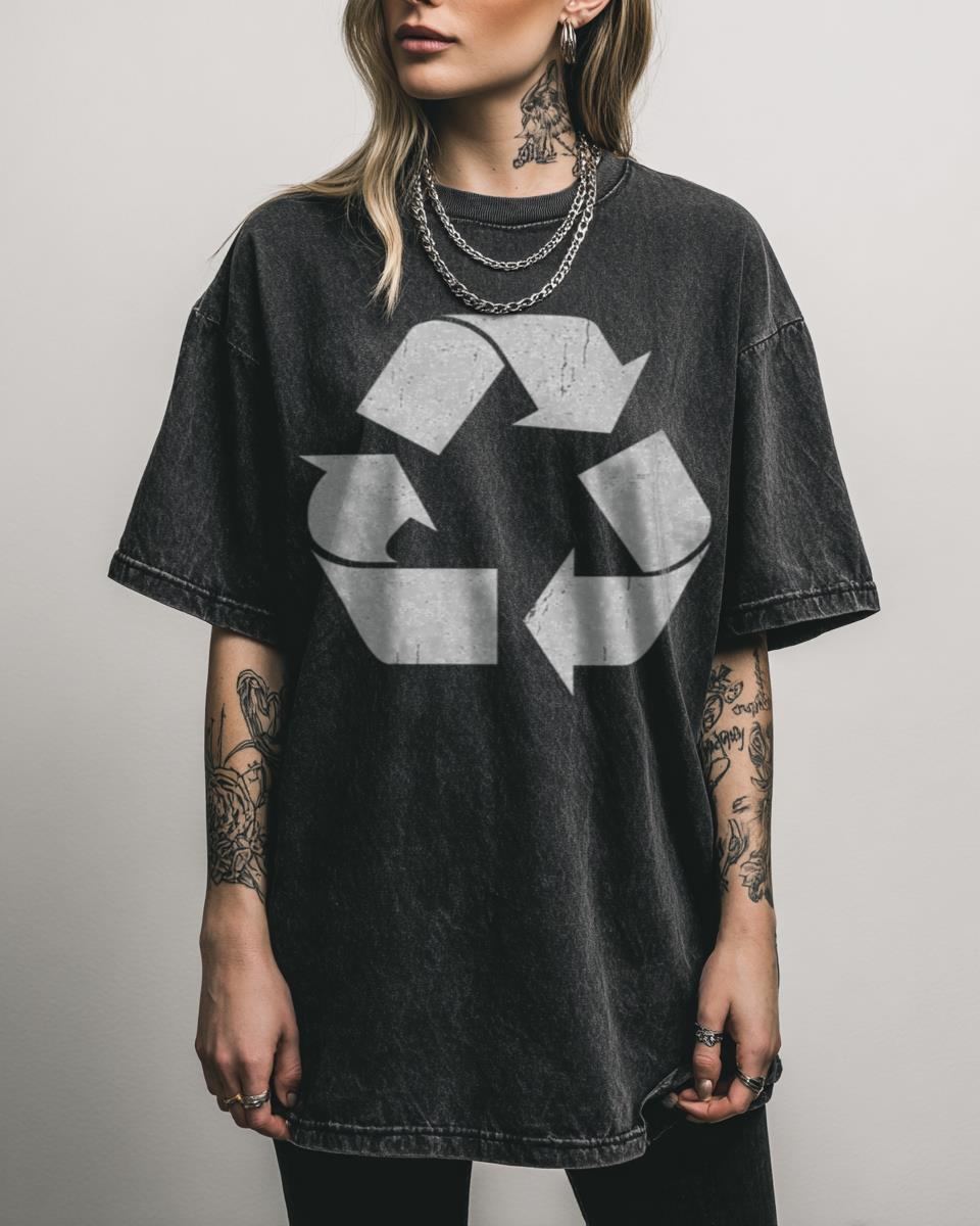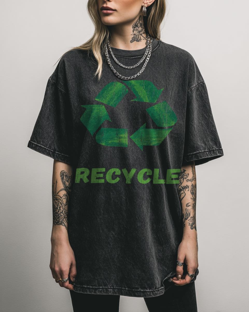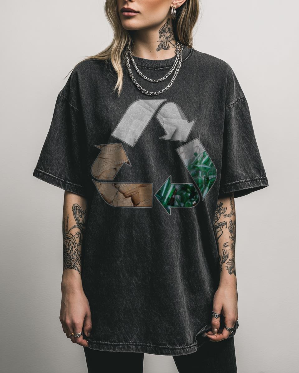Want to make a clear statement about your commitment to a greener planet? This straightforward ‘Recycle’ graphic tee features the universally recognized recycle triangle symbol, emphasizing the importance of protecting our environment. The design incorporates elements like cardboard, glass, and paper, highlighting various materials that contribute to a greener world through recycling. Why You’ll Love…