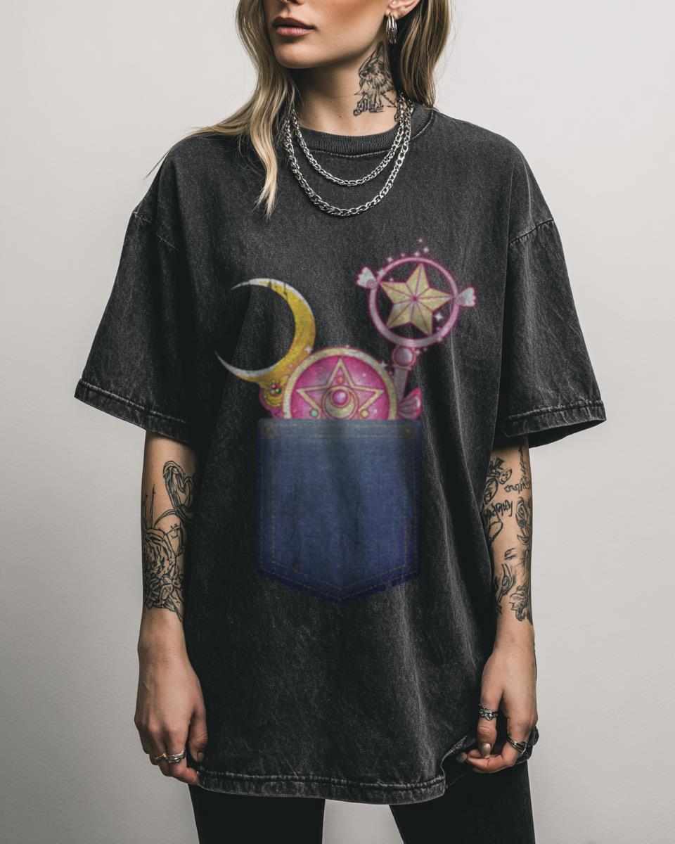 Carry a Little Magic with the Sailor Moon Pocket Magic Wand T-Shirt! Keep the power of the Moon close with our **Sailor Moon Pocket Magic Wand T-Shirt**. This subtle anime graphic tee features the iconic magical wand peeking from a “pocket” design, perfect for fans who appreciate a minimalist nod to their favorite magical girl…