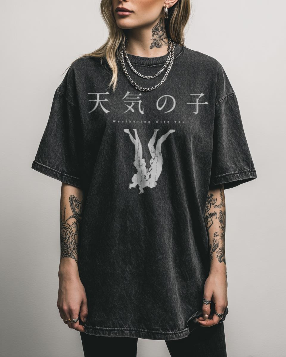Relive the magic of Makoto Shinkai’s ‘Weathering With You’! This graphic tee proudly displays the official title logo from the critically acclaimed anime movie ‘Weathering With You’ (Tenki No Ko). It’s a minimalist yet powerful design for fans who cherish the beautiful story of Hodaka and Hina and the cinematic artistry of Makoto Shinkai. Why…