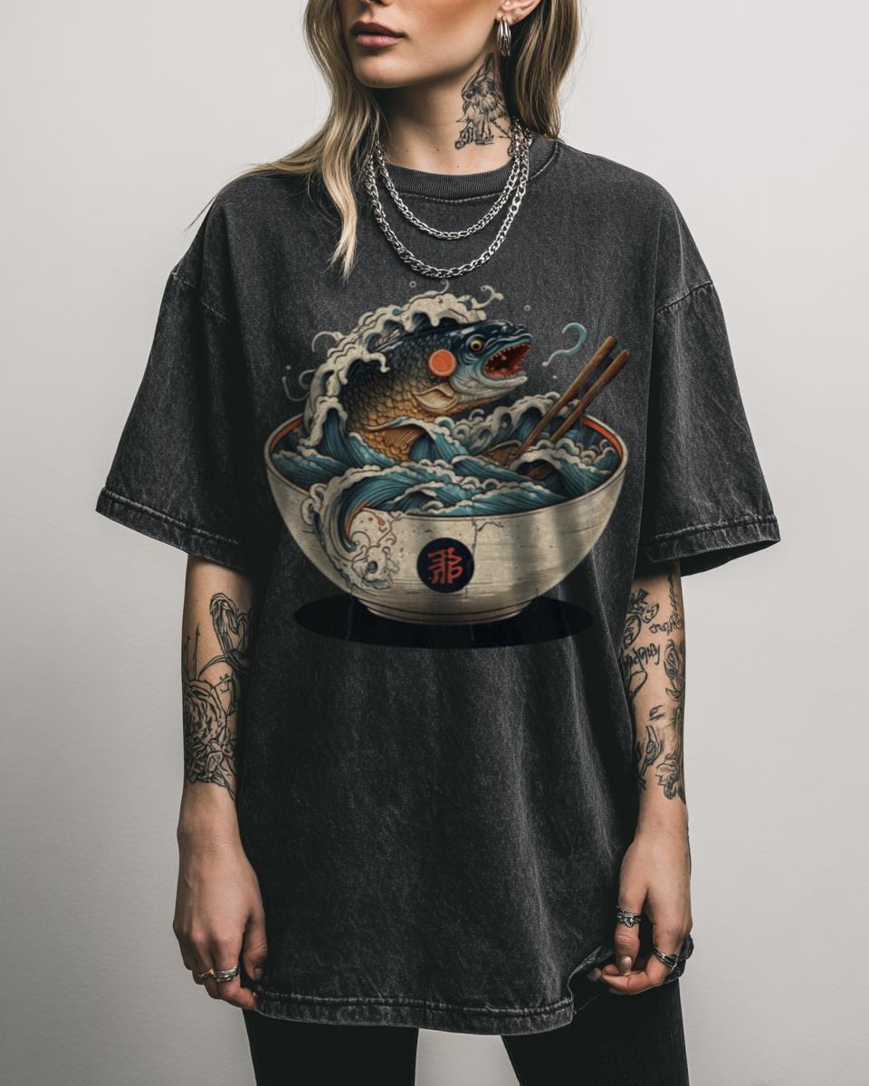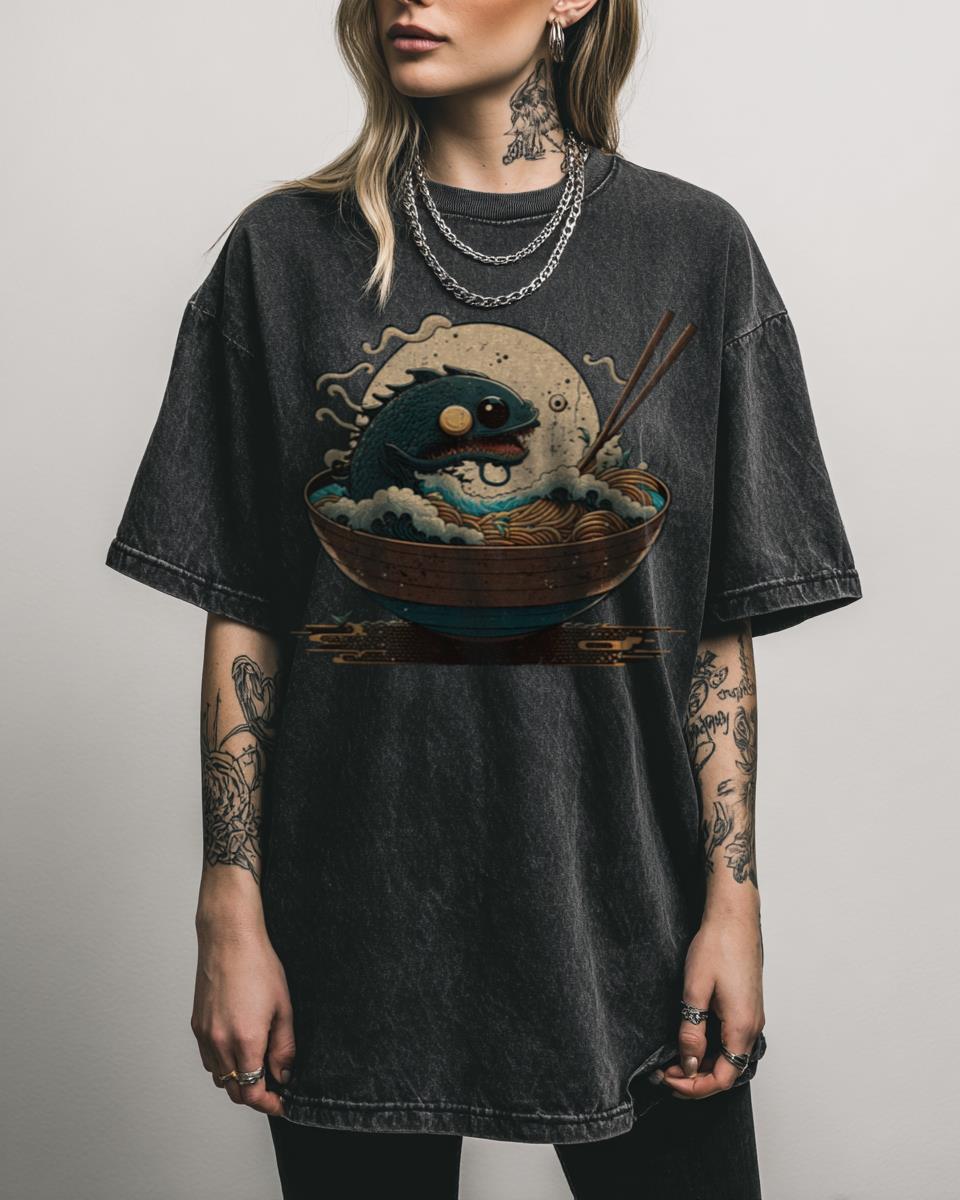 Do you love Japanese food with a side of monstrous fun? Unleash your inner food monster with this ‘Ramen Bowl Monster’ Black Acidwash T-shirt! This playful design brings a humorous, quirky twist to your favorite Japanese noodle dish, creating a fun character that’s both adorable and a little bit spooky. It’s a perfect conversation starter…