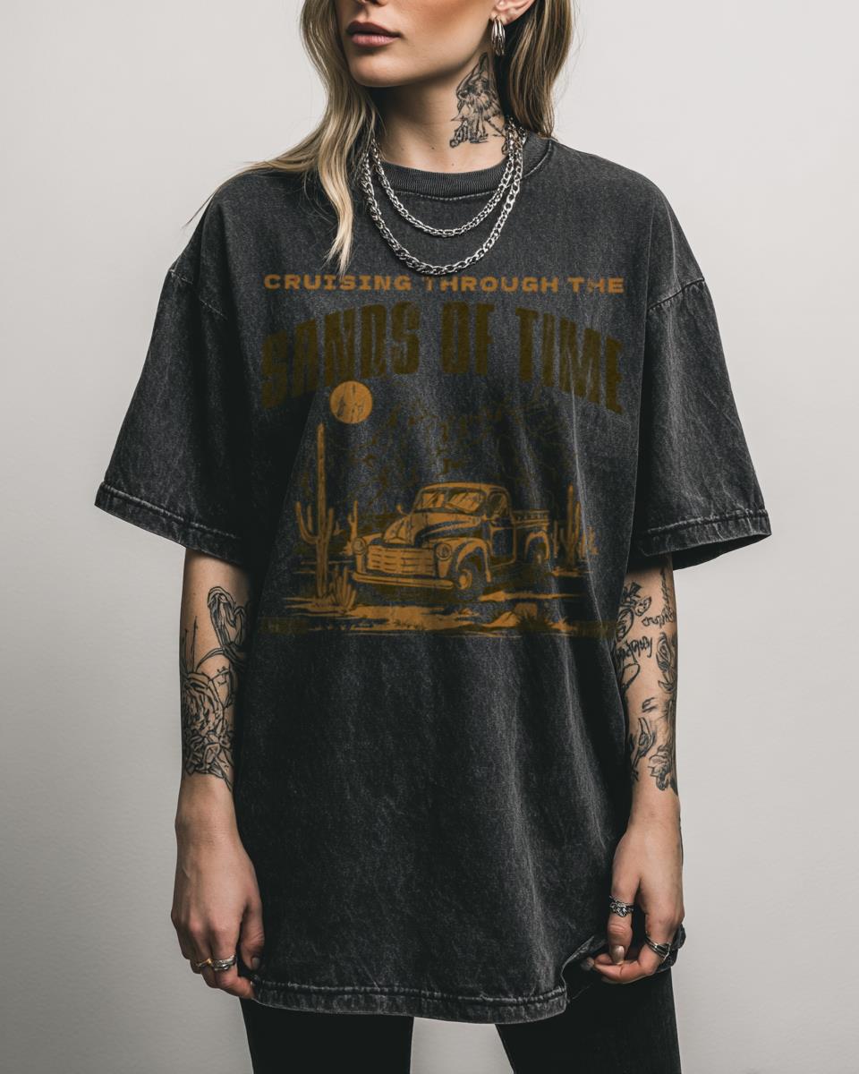 Ready for an endless journey through breathtaking landscapes? Embark on a timeless adventure with this “Cruising Through The Sands Of Time Desert” design! This scenic artwork captures the majestic beauty of a desert road trip, complete with rolling dunes, towering mountains, and iconic cacti under a warm sun. It’s a perfect piece for nature lovers,…