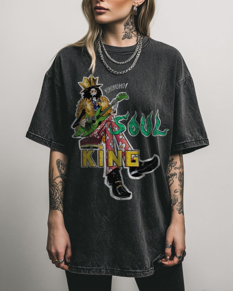 Yohohoho! Ready to join the Straw Hat Pirates with the Soul King himself? Celebrate the musical skeleton and loyal crewmate with this ‘Brook and his Soul!’ graphic tee, inspired by the epic One Piece saga. This design captures Brook, the Soul King, perhaps with his soul separated, in a dynamic pose that embodies his unique…