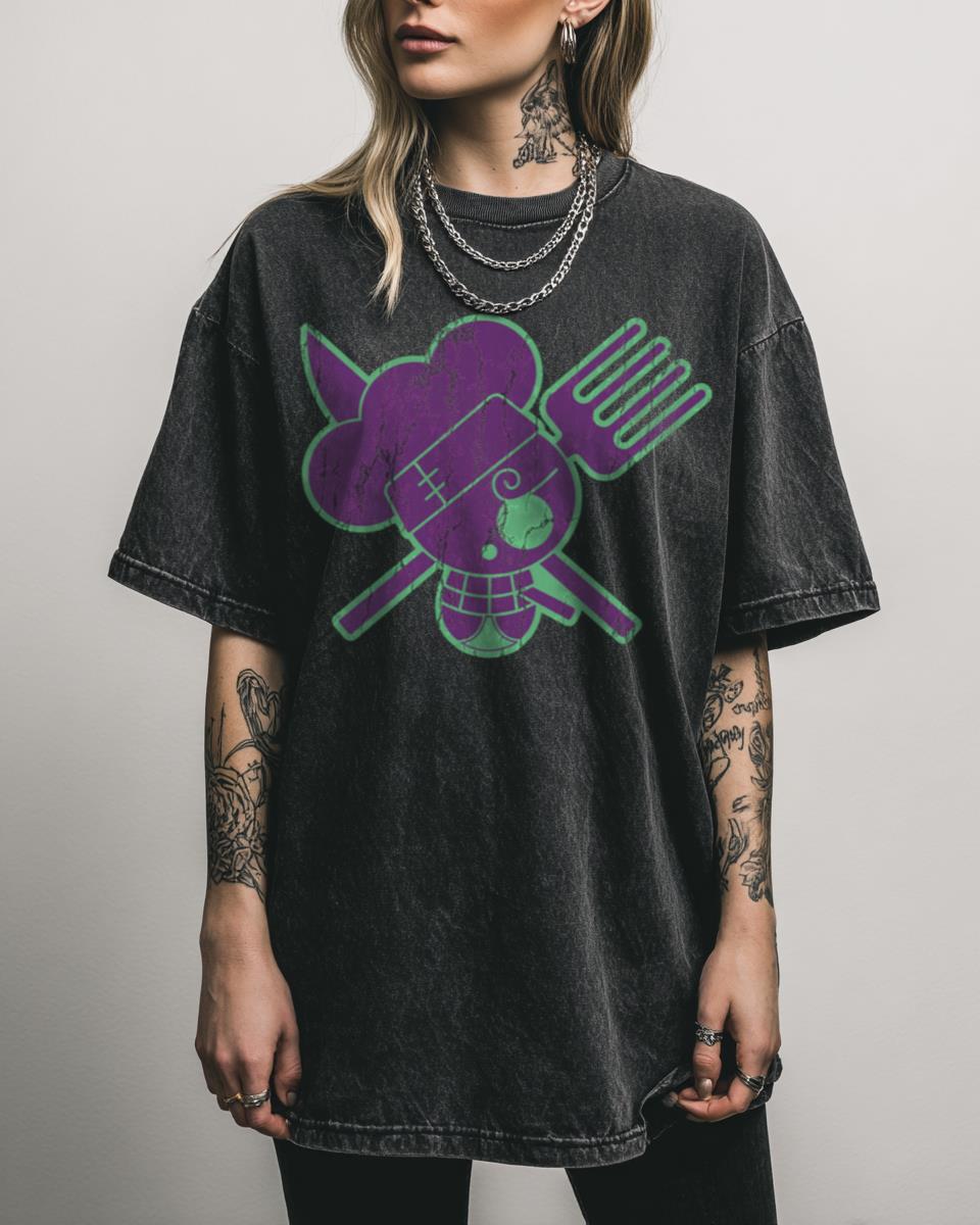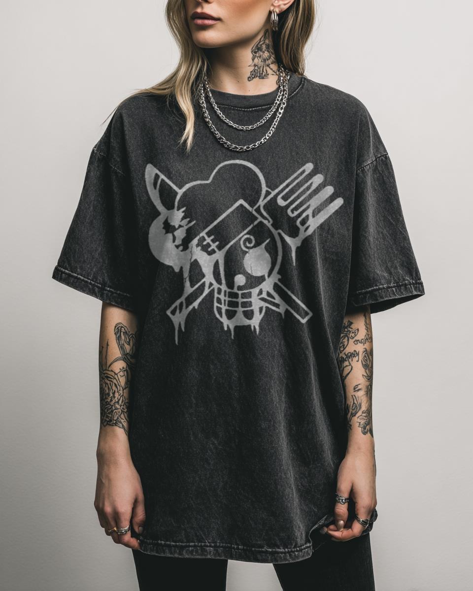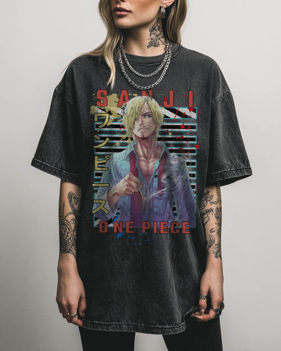 Ready to show your appreciation for the Straw Hat Pirates’ dashing chef, Sanji Vinsmoke? Cook up some style with this awesome Black Acidwash T-Shirt featuring ‘Chef Sanji’ from One Piece. This design pays homage to the Black Leg, capturing his culinary prowess and suave demeanor, making it a perfect piece for fans of the Straw…