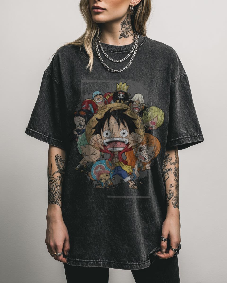 Set Sail with This Straw Hat Crew One Piece Anime Tee! Join Monkey D. Luffy and his fearless crew with this **Straw Hat Crew One Piece Anime Tee**. Featuring a vibrant graphic of the iconic Straw Hat Pirates on a unique black acidwash finish, this fan-created shirt is perfect for any “weeb” or fan of…