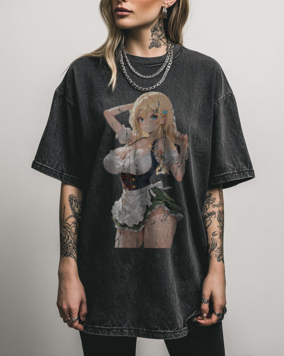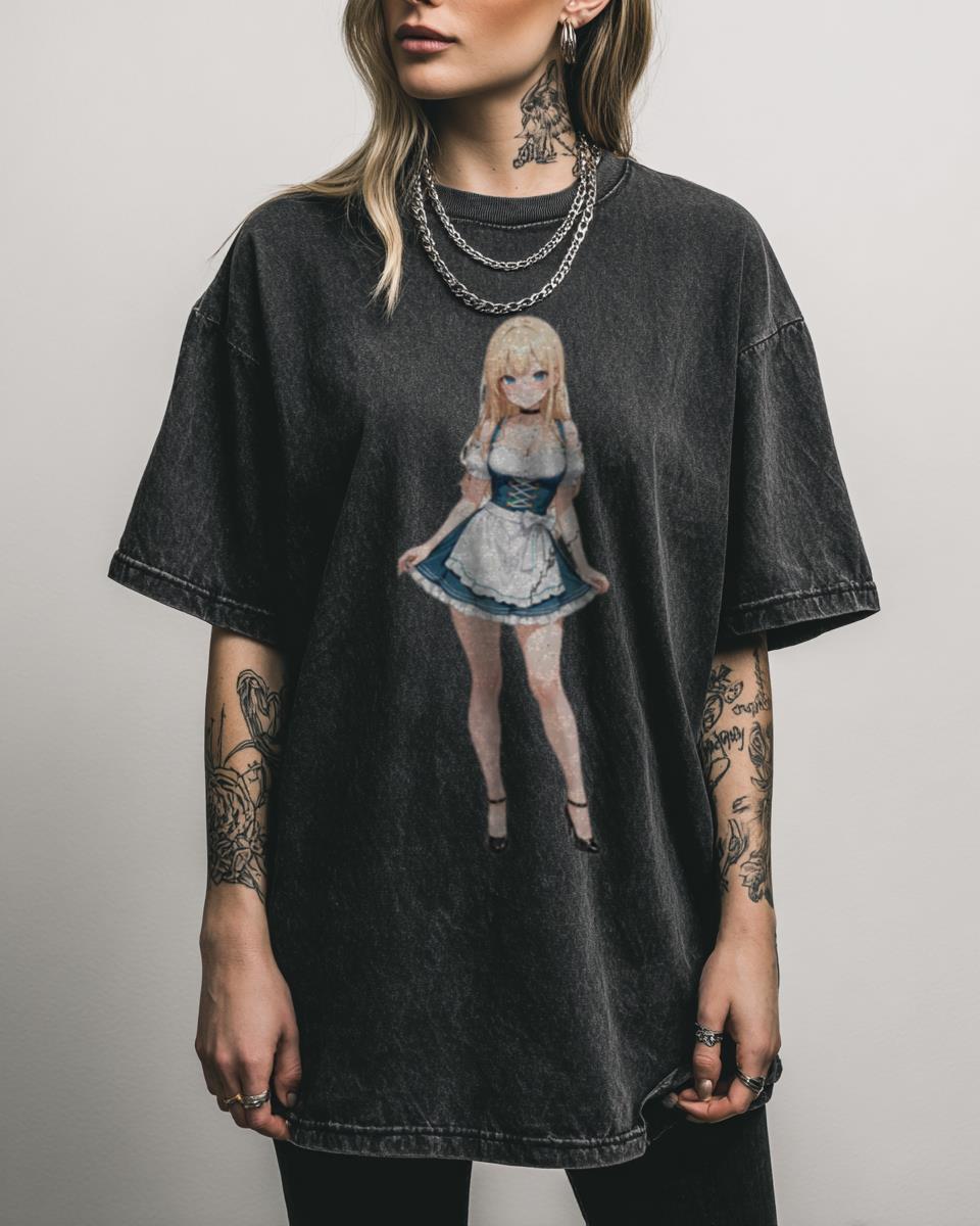 Ready to express your love for unique and captivating anime characters? Presenting Liesel Weiss, the “Sexy German Waifu,” on this eye-catching anime T-Shirt! This design showcases an original blonde anime girl with an enchanting Euro beauty, embodying a popular ecchi style and charming kawaii vibes. Perfect for anime enthusiasts and collectors of distinctive waifu art…