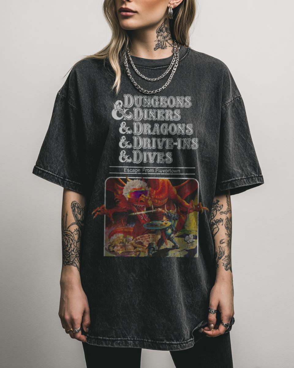 Are you a master of both tabletop RPGs and culinary adventures? Escape from Flavortown with this hilariously unique ‘Dungeons & Diners & Dragons & Drive-Ins & Dives’ design. It’s the ultimate mashup for fans of D&D and Guy Fieri, combining fantasy role-playing with iconic food culture in a playful, long-tail concept. Why You’ll Love This:…