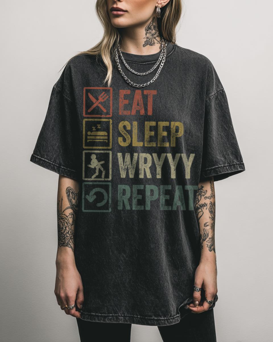 Do you follow a daily routine that perfectly captures your inner villain from Jojo’s Bizarre Adventure? Embrace the iconic phrase with this ‘Funny eat sleep wryyy repeat’ design. This retro vintage anime tee is a hilarious parody for fans of Dio Brando, his stand ‘The World,’ and the unique quirks of Jojo’s Bizarre Adventure, making…