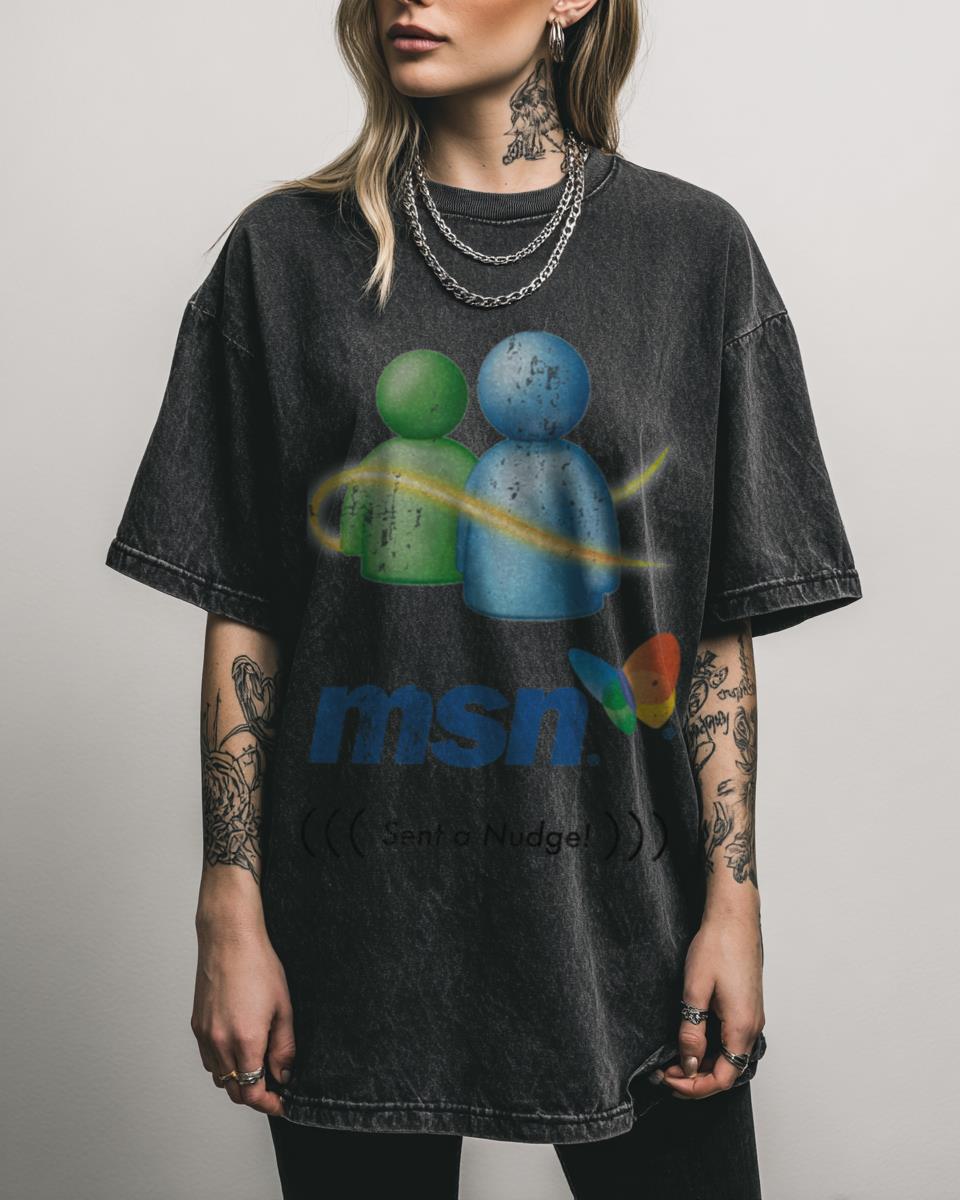 Remember the “Nudge”? Grab Our MSN Messenger Nudge Tee! Take a trip down memory lane with this MSN Messenger Nudge T-shirt! A perfect piece of 90s childhood nostalgia, this retro graphic tee celebrates the iconic instant messenger and its unforgettable “Sent a nudge!” feature. It’s an ideal pop culture gift for anyone who grew up…