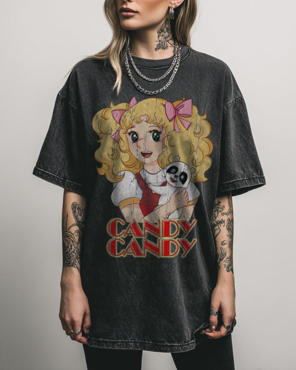 Nostalgic for the sweet charm of classic retro anime? Step back in time with this delightful ‘Candy!’ design, featuring the beloved Candy Candy! This artwork captures the iconic anime girl in a cute, kawaii, and retro style, perfect for fans of classic shojo manga and vintage animation. Printed on a stylish Black Acidwash T-shirt, it’s…