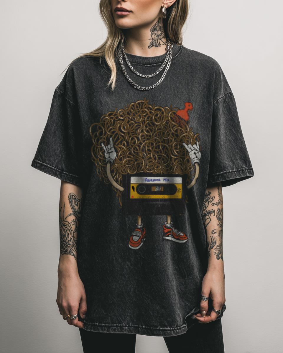 Why Choose This Awesome Mix Vol. Funky Retro Cassette T-Shirt? Get ready to groove with this Awesome Mix Vol. Funky retro cassette t-shirt, inspired by classic 80s vibes and iconic sci-fi adventurers. This unique graphic tee, made from 100% heavyweight Black Acidwash cotton, is perfect for fans of vintage music and cosmic heroes. Features of…
