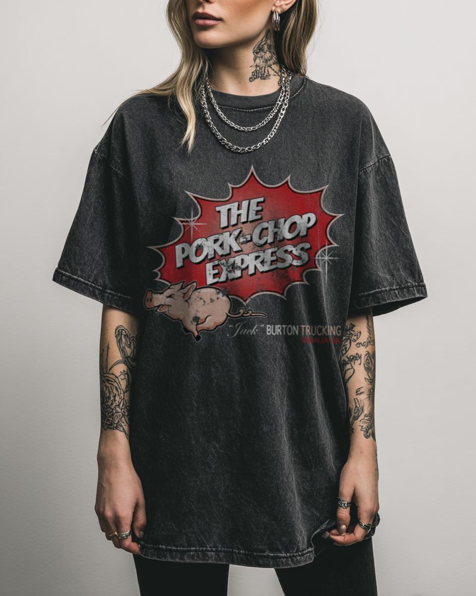 Hit the Road with This Big Trouble in Little China ‘Pork Chop Express’ T-Shirt! Join Jack Burton on an epic adventure with this Big Trouble in Little China ‘Pork Chop Express’ T-Shirt, celebrating the iconic truck from the 80s action-comedy cult classic. This retro graphic tee, with its unique black acidwash finish, is a must-have…