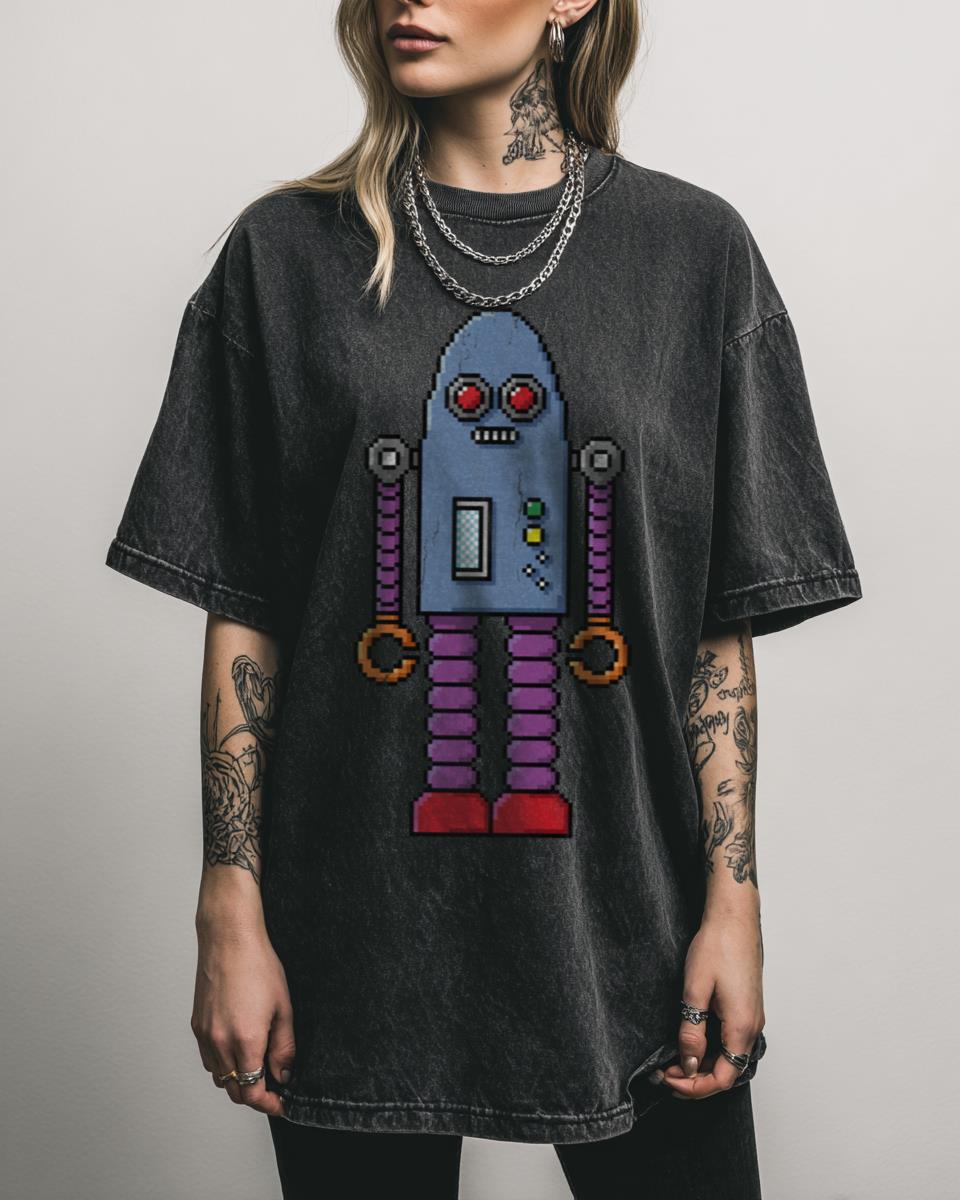 Step into a retro-futuristic world with this charming “Pixel Robot 227” design! This cool pixel art robot combines vintage gaming aesthetics with classic sci-fi charm. It’s the perfect graphic for geeks, nerds, and anyone who loves old-school pixelart, mechs, and the nostalgic appeal of early science fiction. A truly unique piece for your wardrobe. Why…