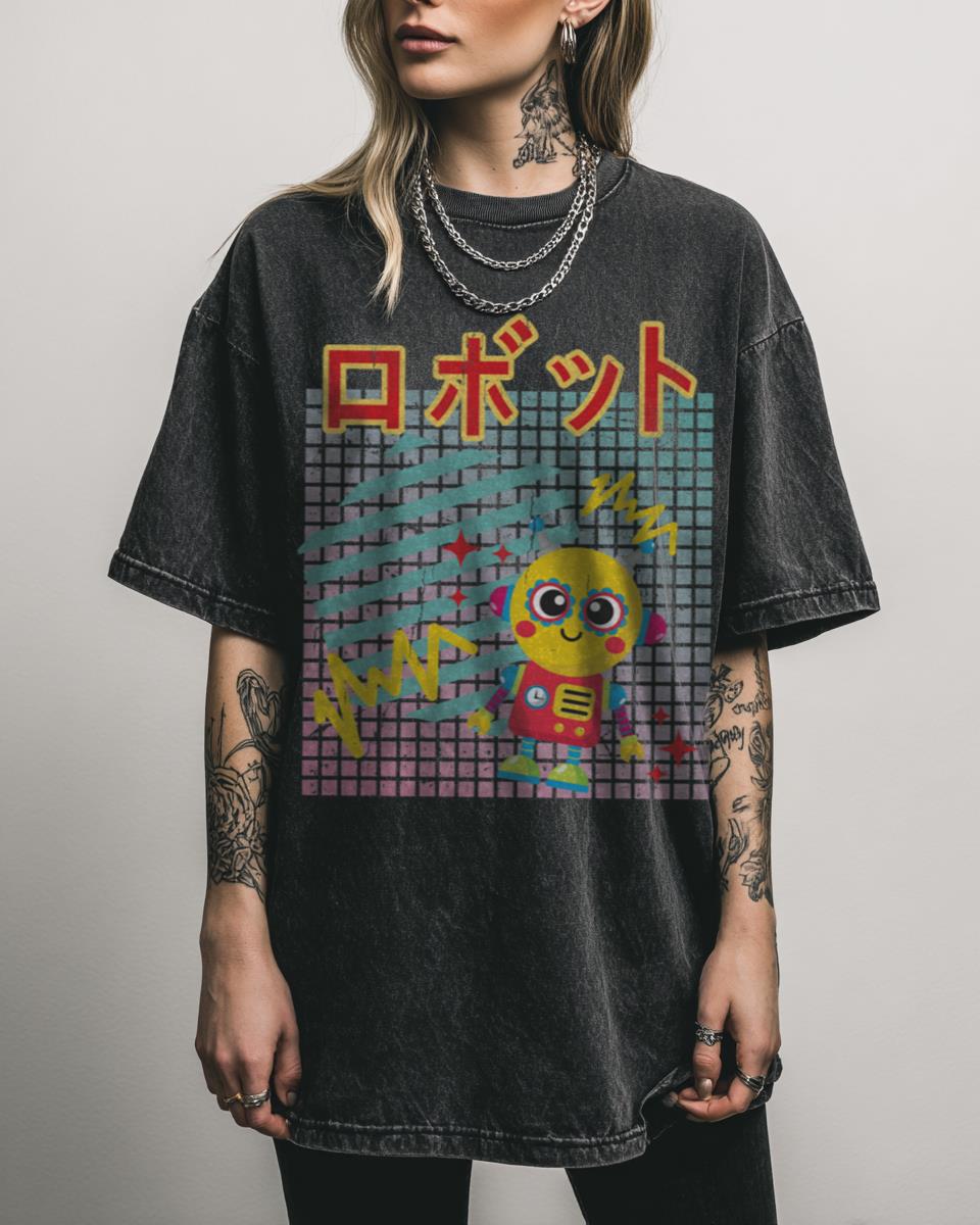 Are you drawn to the nostalgic glow of 80s Japanese aesthetics and sci-fi? Step into a retro-futuristic dream with this ‘Japanese Vaporwave Robot Soldier’ graphic t-shirt! Blending classic anime influences with synthwave and retrowave vibes, this design captures the essence of 80s/90s Japanese cyber culture, perfect for anime lovers and vaporwave enthusiasts. Why You’ll Love…
