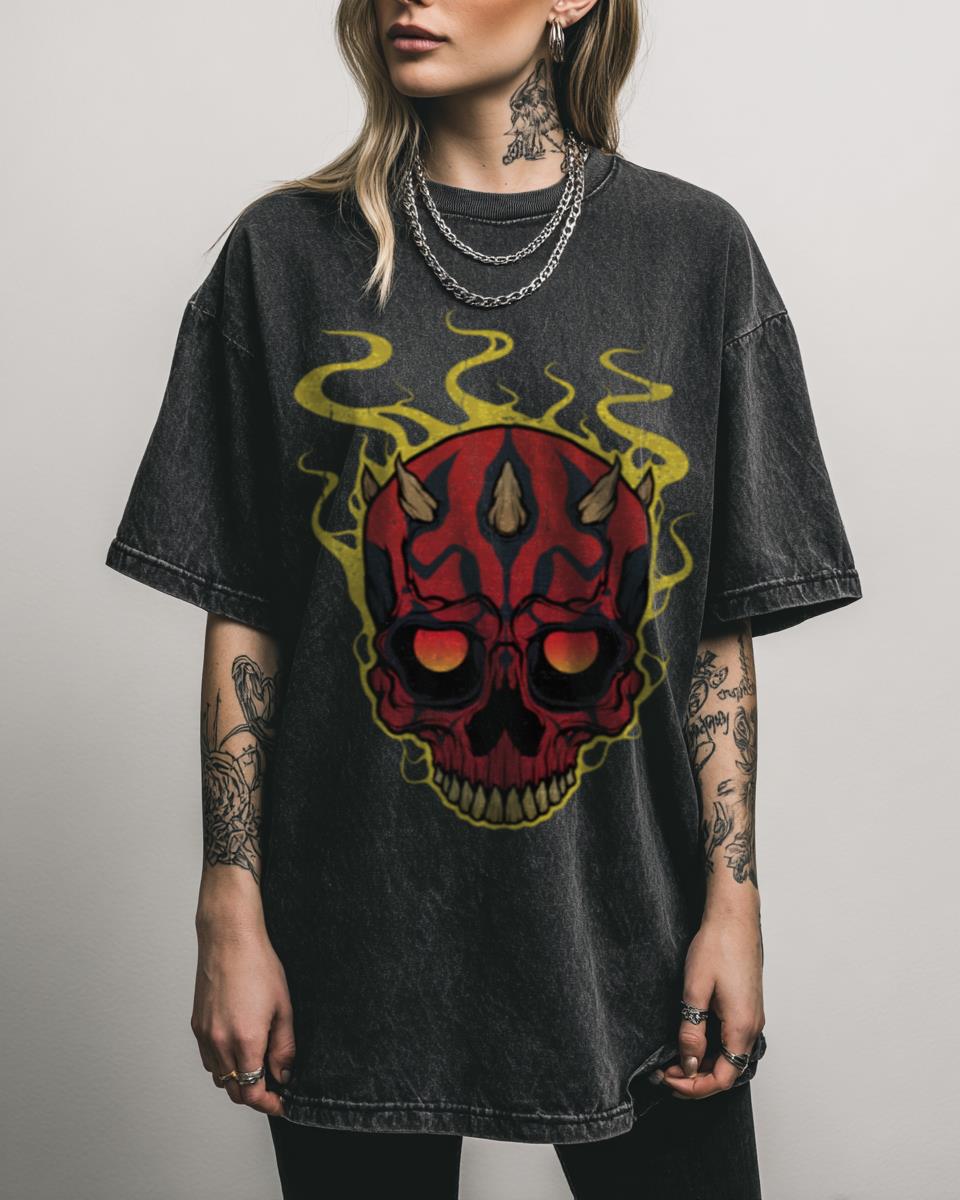 Are you drawn to the power of the Dark Side? Embrace the menacing presence of the Sith with this ‘Darth Maul Skull’ design, blending the iconic Star Wars villain with a gothic skull aesthetic. This striking graphic is perfect for fans of the Dark Side, sci-fi epics, and the fearsome Zabrak warrior. Why You’ll Love…