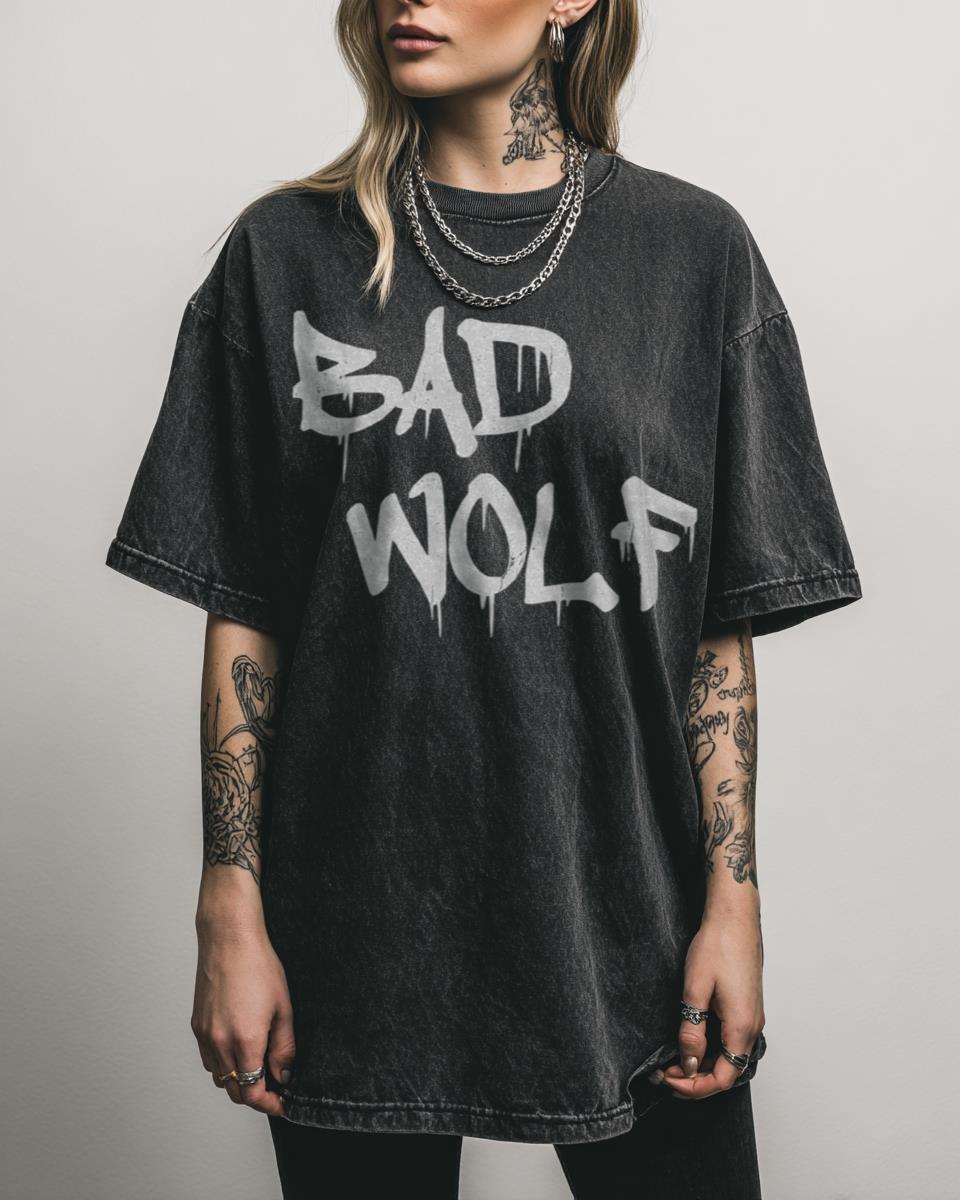 Are you the Bad Wolf? Embrace the mystery of Doctor Who! This ‘Bad Wolf’ graphic T-shirt features a striking graffiti-style design, a powerful and iconic reference from the ‘Doctor Who’ universe, particularly the era of the Ninth Doctor and Rose Tyler. This urban-inspired science fiction design is perfect for Whovians who love the enigmatic phrase…
