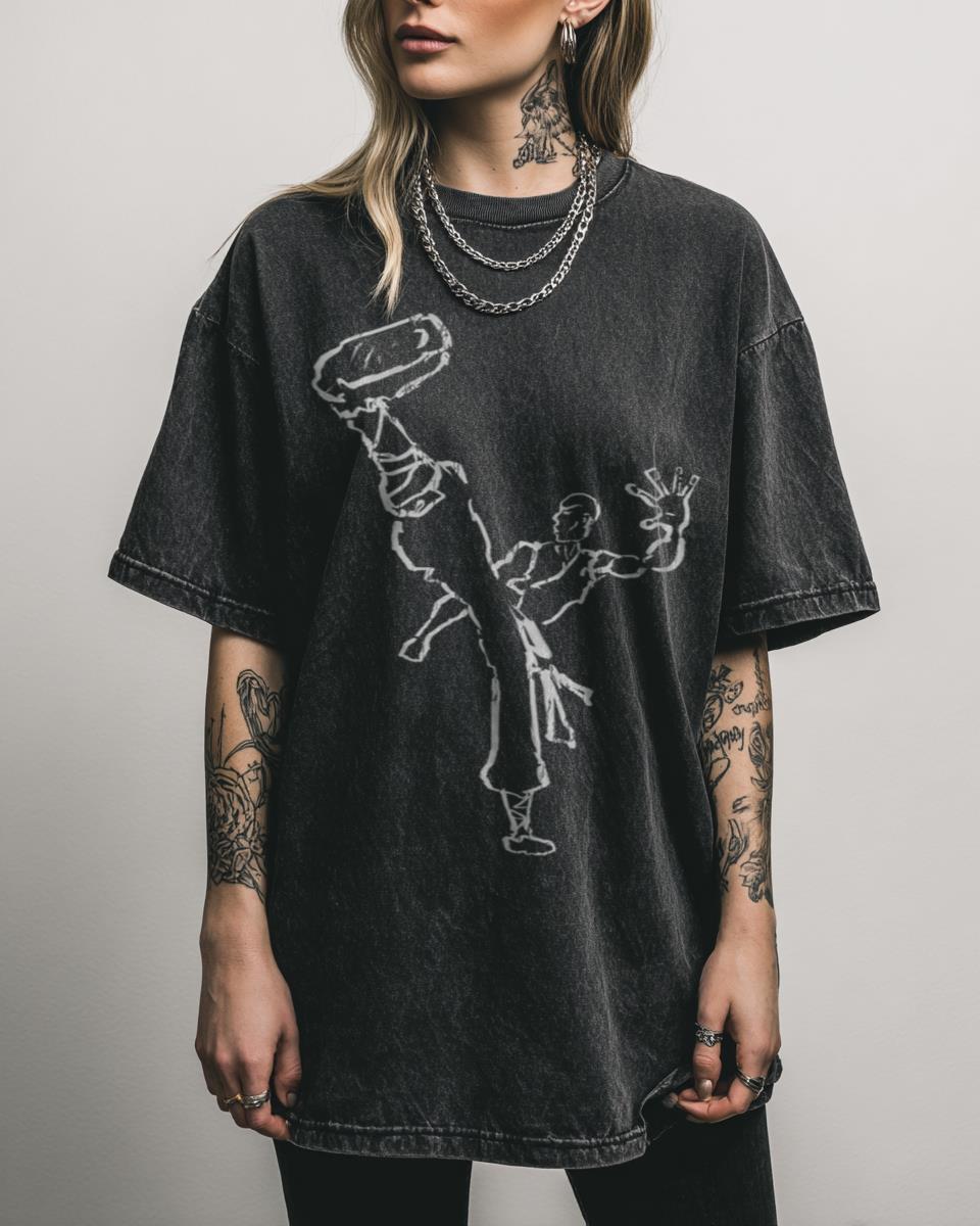 Are you a martial arts enthusiast looking for dynamic apparel? This design captures the powerful silhouette of a martial artist executing a precise kick, embodying strength and discipline. The minimalist white graphic against a dark background highlights the elegance and intensity of Kung Fu and other combat styles. Why You’ll Love This Action-Packed Martial Arts…