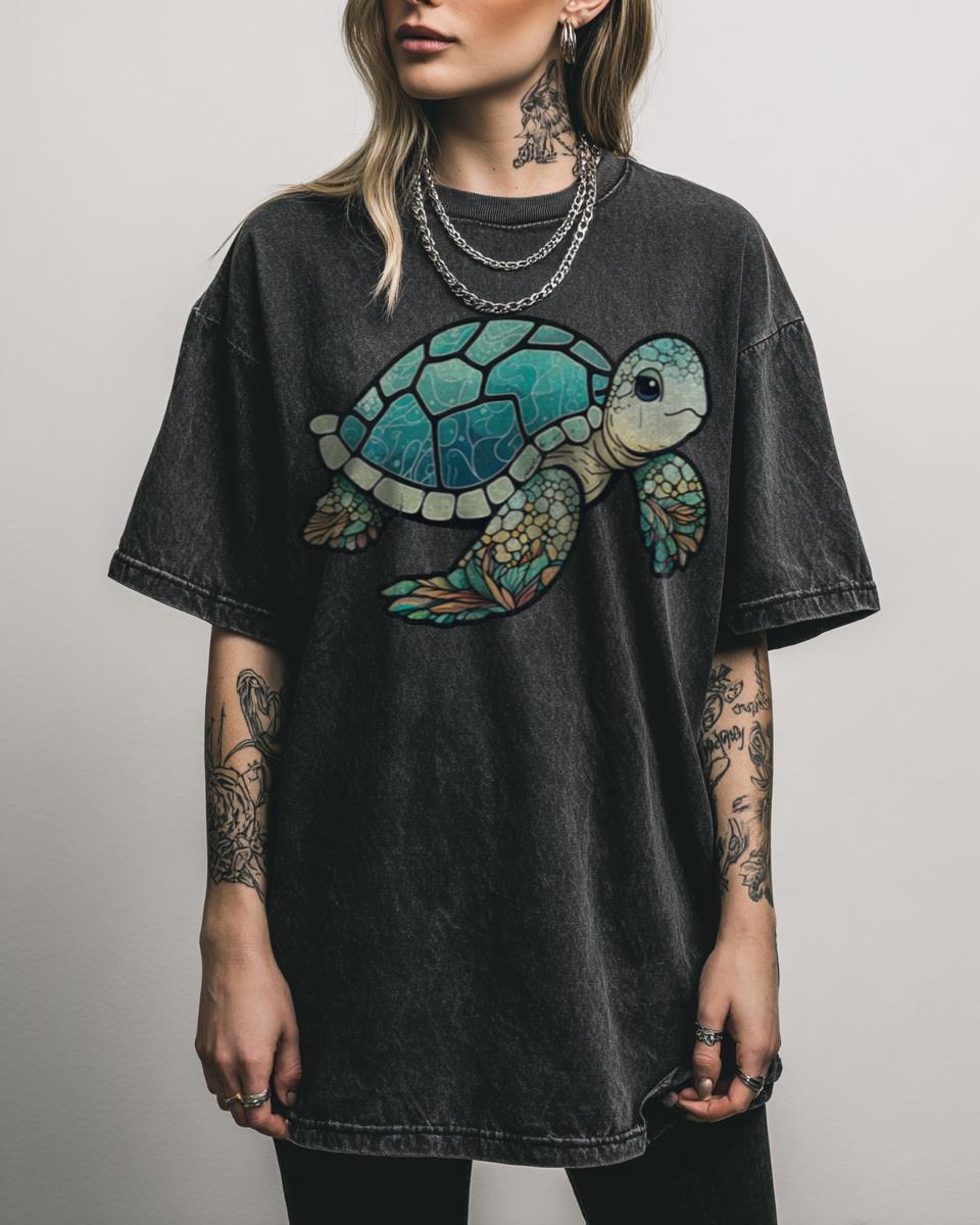 Dive into the vibrant beauty of the ocean with this stunning stained glass sea turtle! Adorn yourself with the serene elegance of marine life with this ‘Stained Glass Sea Turtle’ graphic tee. This intricate design captures the beauty of a sea turtle in a captivating stained glass art style, perfect for ocean lovers and nature…
