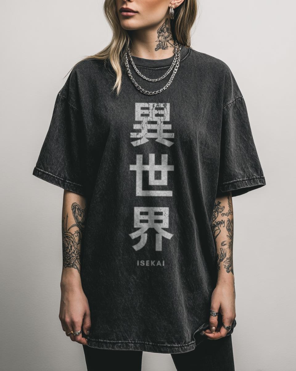 Step into Another World with the Isekai Japanese Kanji Anime Tee! Show your love for portal fantasies with this stylish Isekai Japanese Kanji anime genre graphic tee. Featuring a fan-created design of the Kanji for “Isekai” (meaning “another world”), this shirt is perfect for fans of this popular anime and manga genre. Made from 100%…