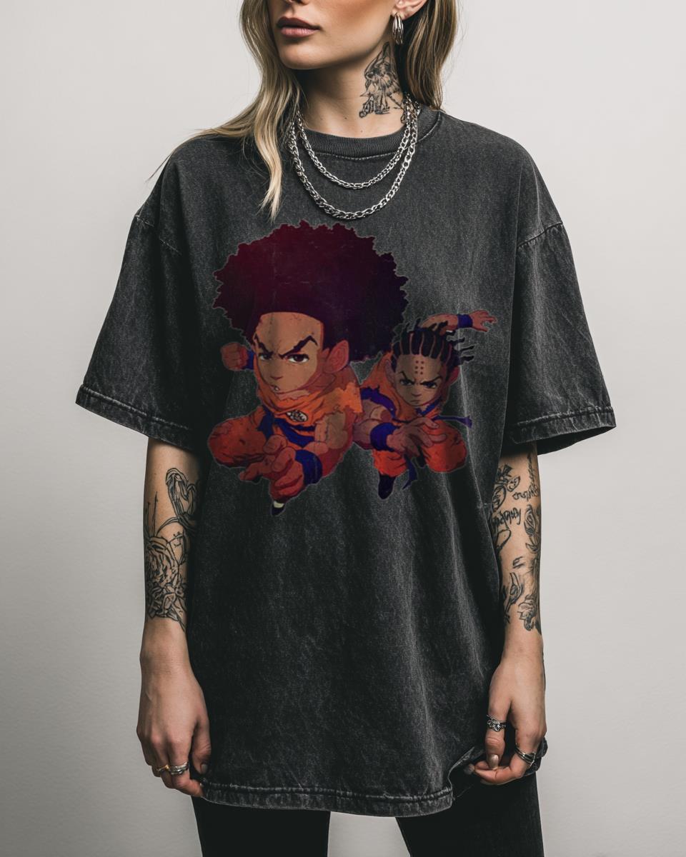 Experience the raw energy of ‘The Boondocks’ with this manga-inspired design featuring the Freeman brothers! This “The Boondocks manga” T-shirt captures the dynamic and often confrontational spirit of Huey and Riley Freeman. Blending anime aesthetics with social commentary and action, it’s a powerful piece for fans of the iconic series. Why You’ll Love This: Dynamic…