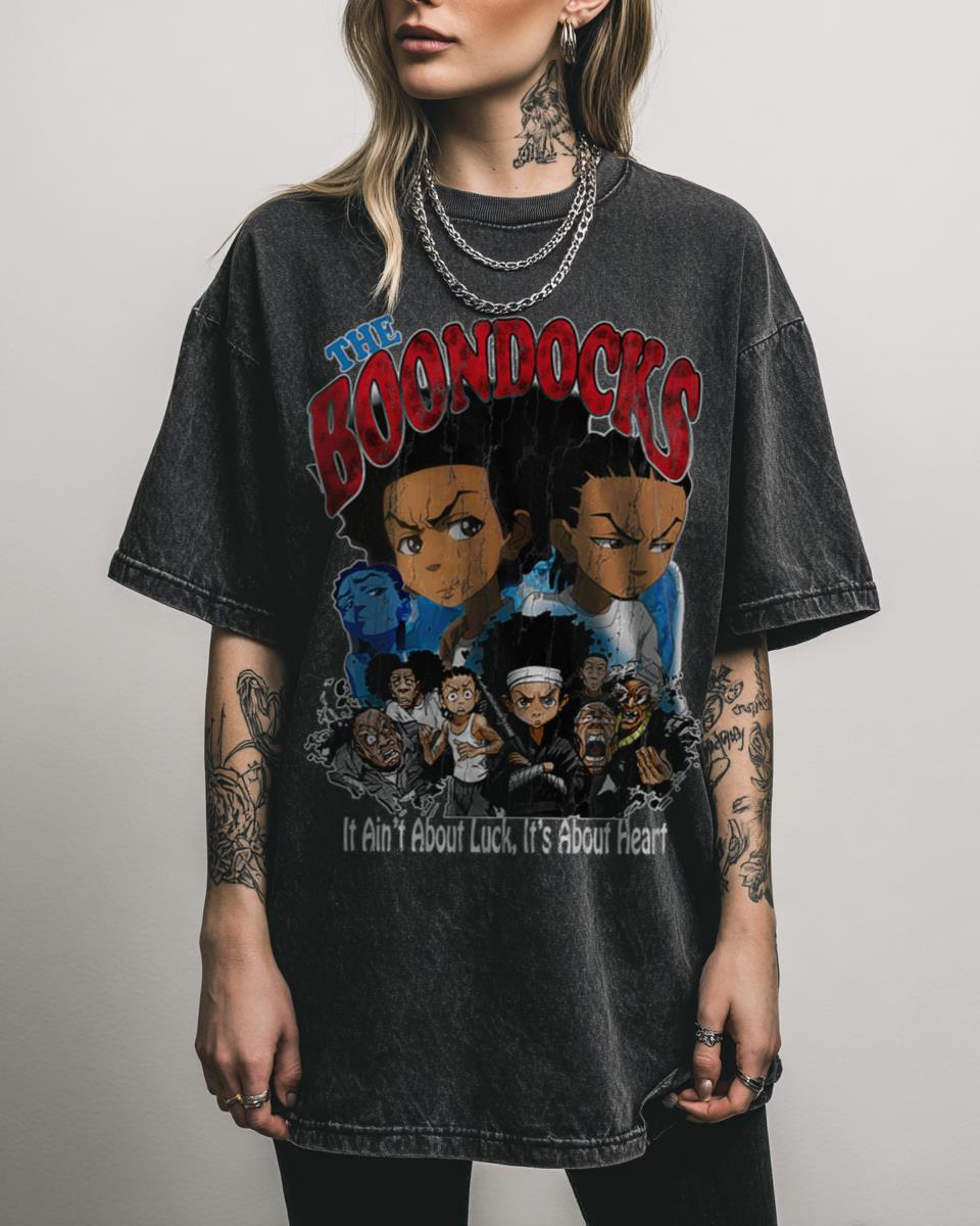 Ready to represent your favorite iconic animated series with some serious style? Step into the world of Woodcrest with ‘The Boondocks’ T-shirt, featuring dynamic artwork inspired by the beloved cult cartoon. This design captures the essence of Huey, Riley, and Granddad Freeman’s satirical adventures, blending streetwear art with classic anime influence from artist JenniferM98. Why…