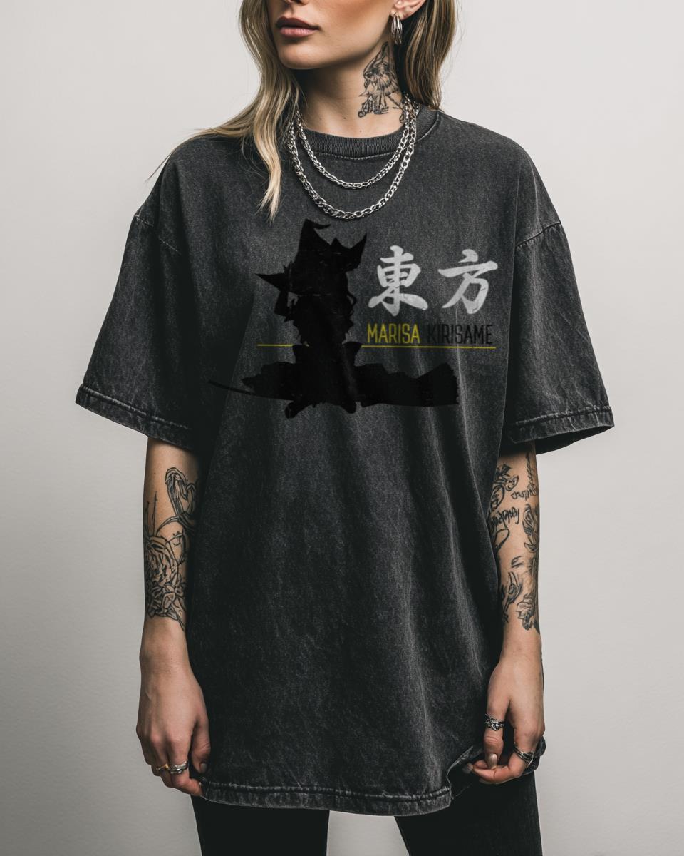 Are you a fan of the mischievous and powerful magician, Marisa Kirisame, from Touhou Project? Cast a spell of style with this “Marisa Kirisame” graphic t-shirt. This design celebrates the iconic witch from the popular Touhou Project game series, known for her powerful magic and signature ‘Master Spark’ attack. Perfect for fans of Japanese bullet…