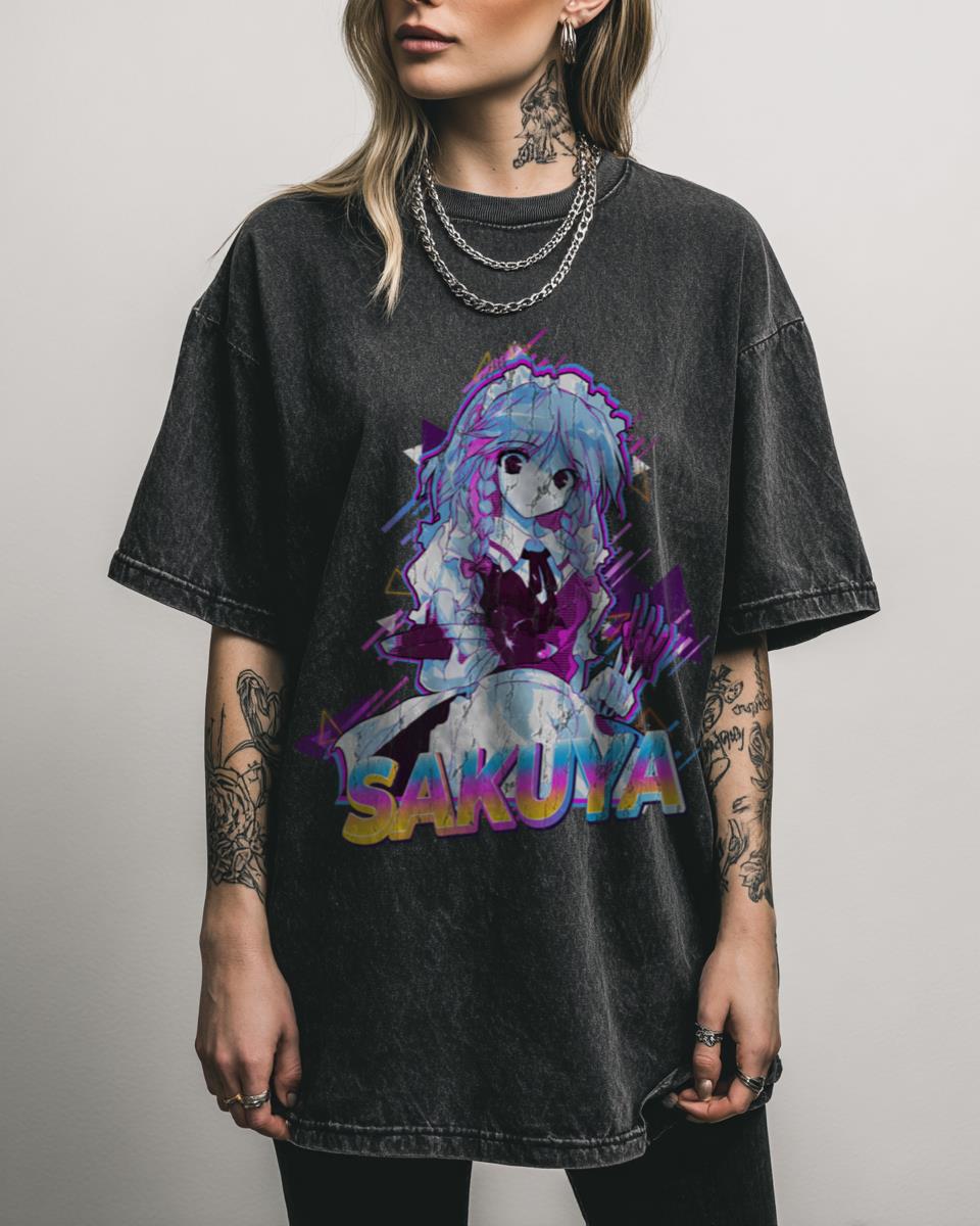 Are you captivated by the elegant characters and magical world of Touhou Project? Embrace the beauty of ‘Sakuya Izayoi’ with this charming anime girl design. Featuring Sakuya surrounded by blue pastel roses, this fan art captures her grace and mystique, perfect for fans of Touhou Project and cute anime aesthetics. Why This Touhou Anime Tee…